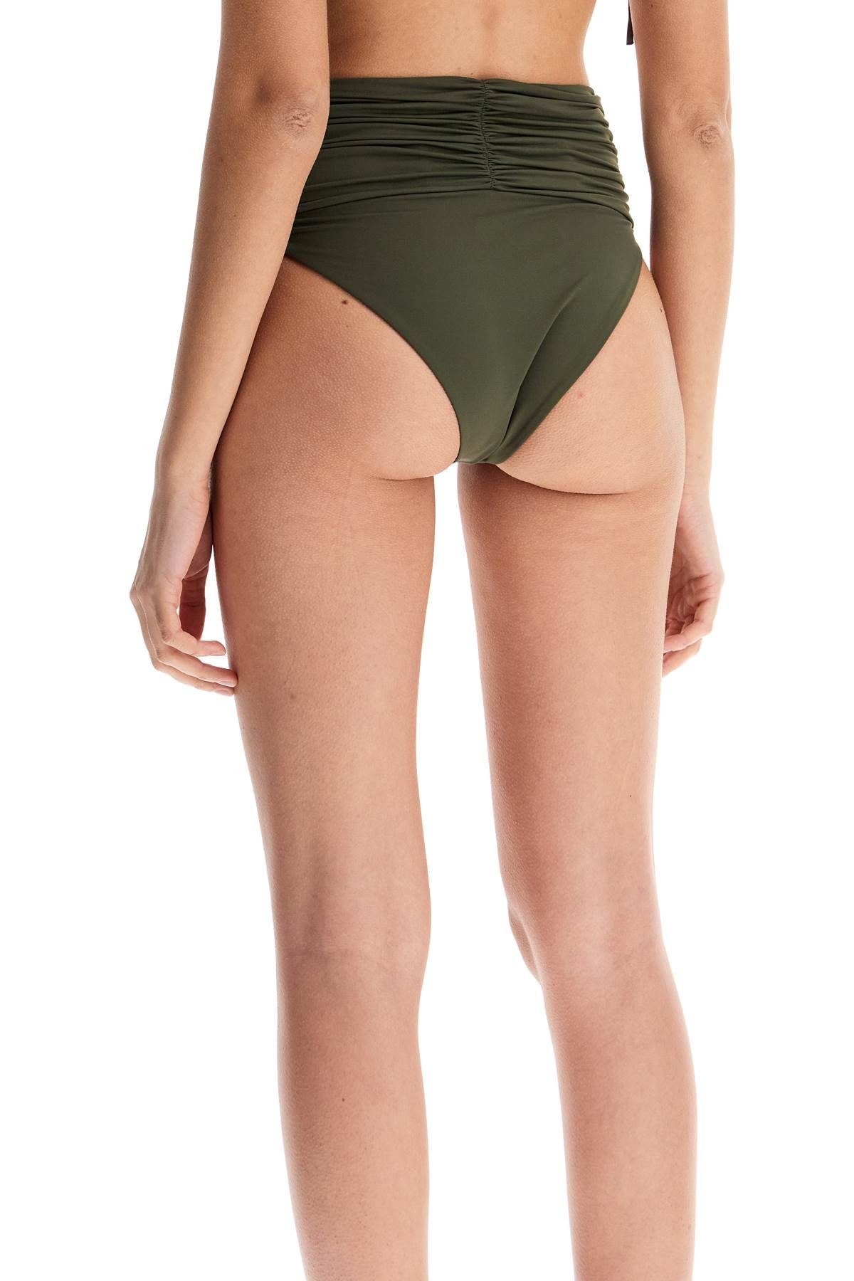 The Magda Butrym bikini bottom is made of metallic lycra with a high ruched waist and a cheeky fit