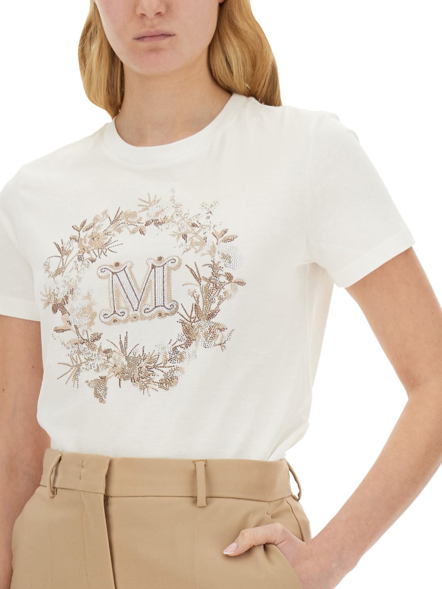 코튼 져지 크루넥 티셔츠 위드 로고 자수