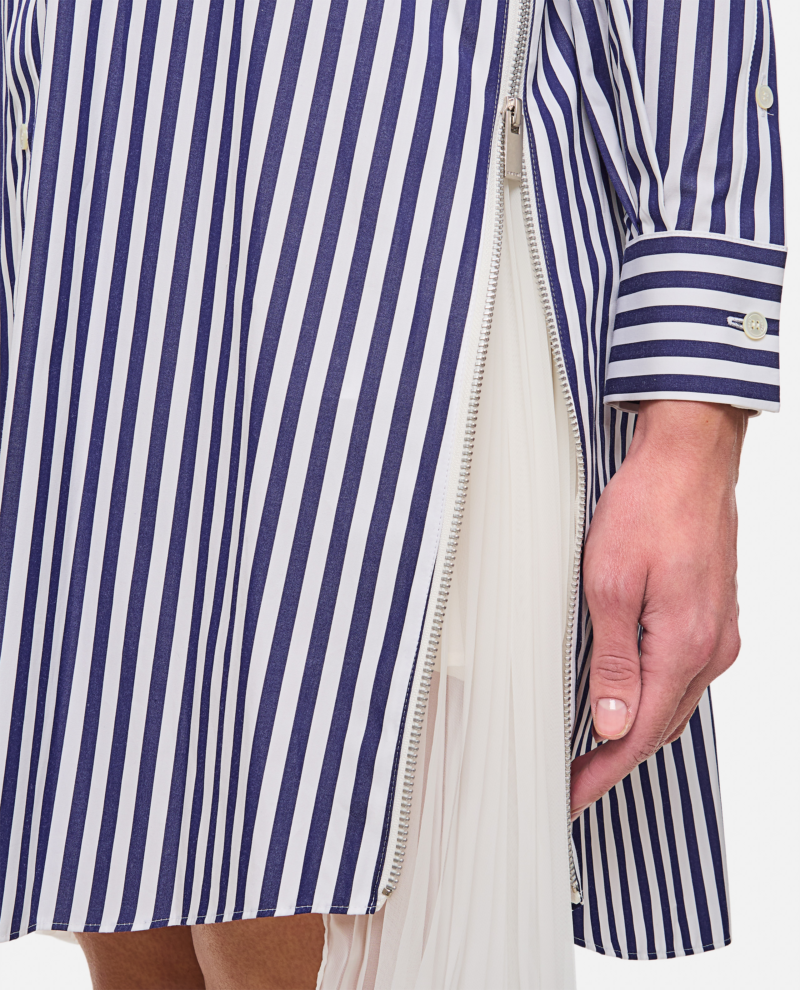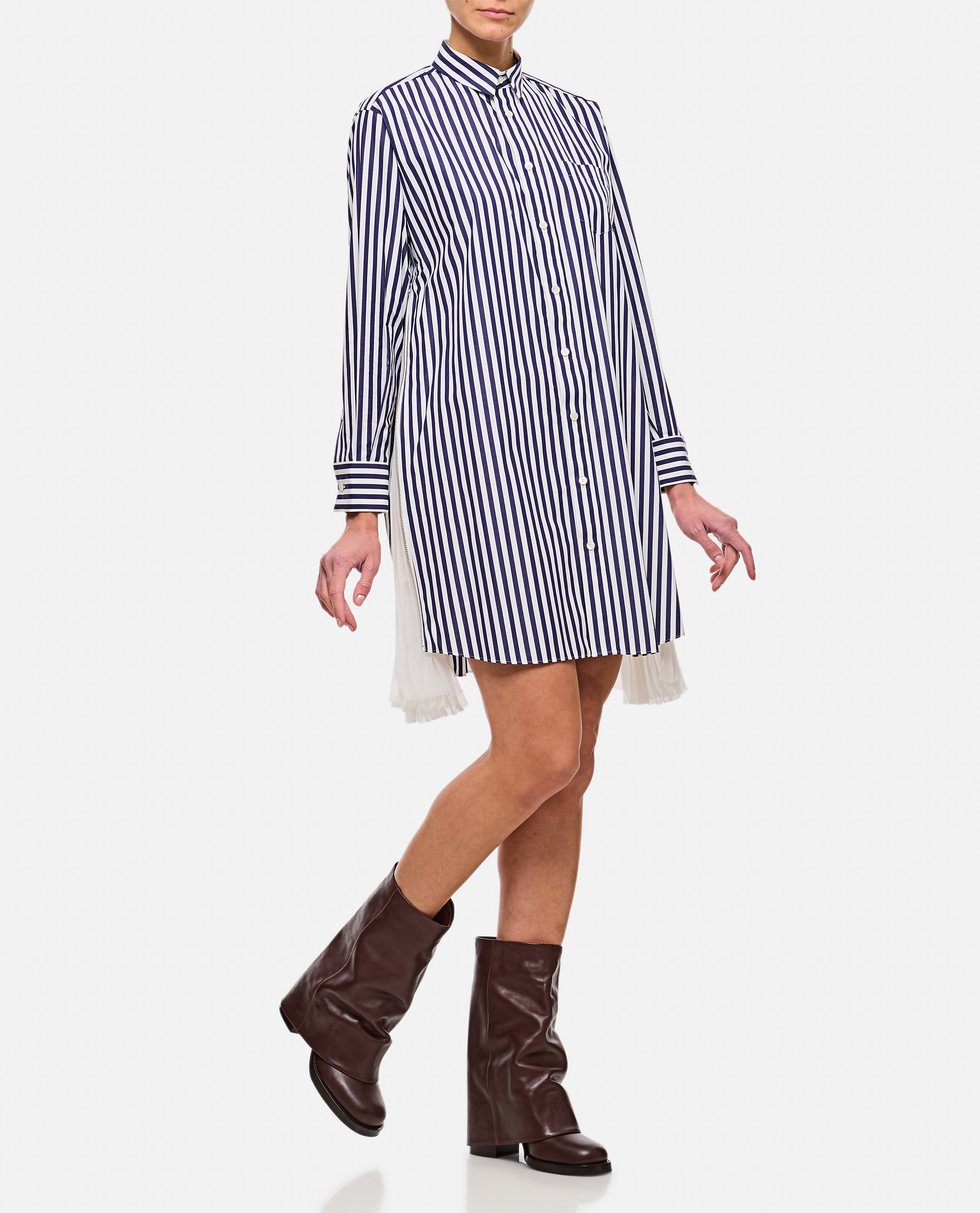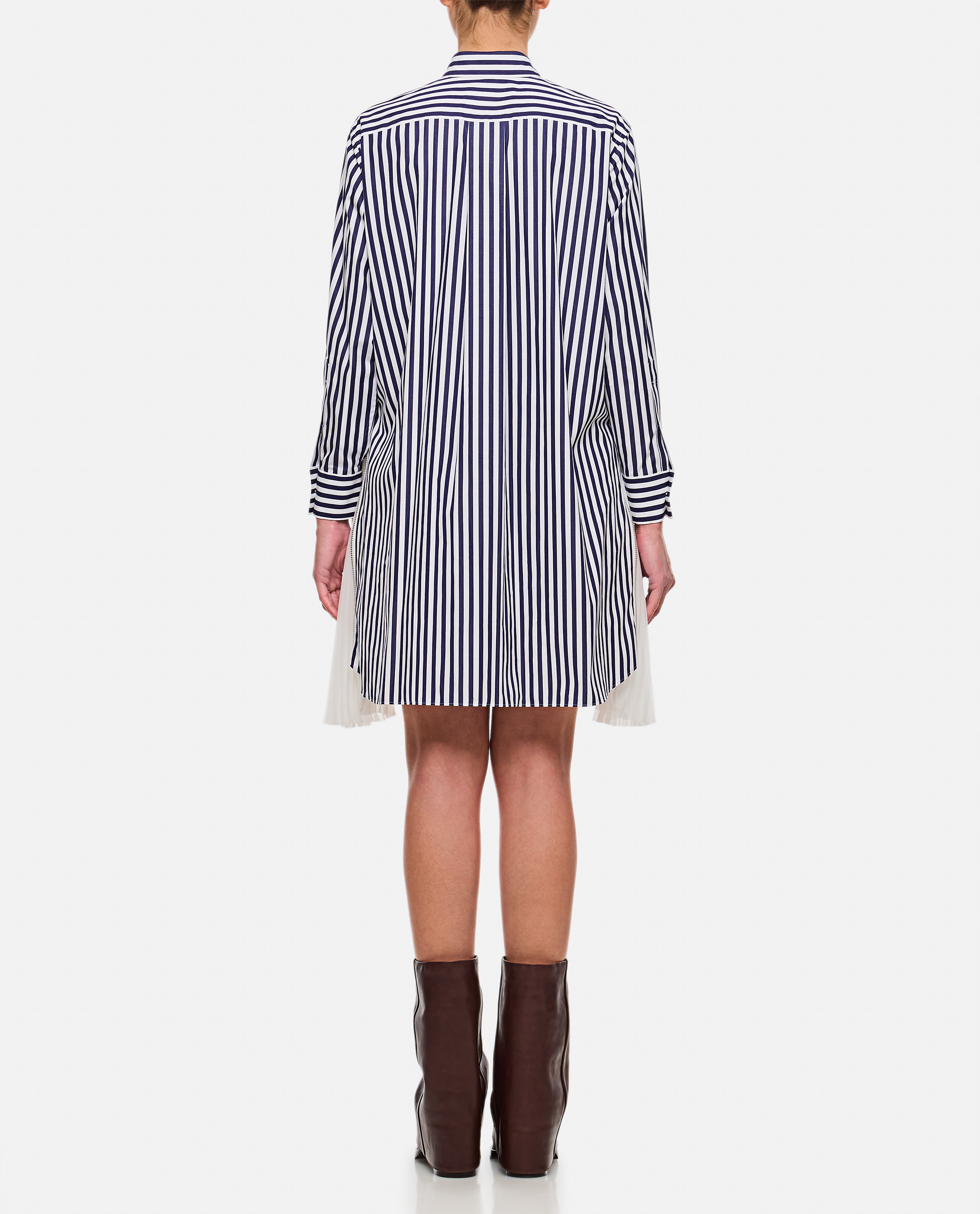 Cotton.Inset design.Vertical stripe pattern.Pleated details.Pointed collarFront button fastening.Asymmetric hem