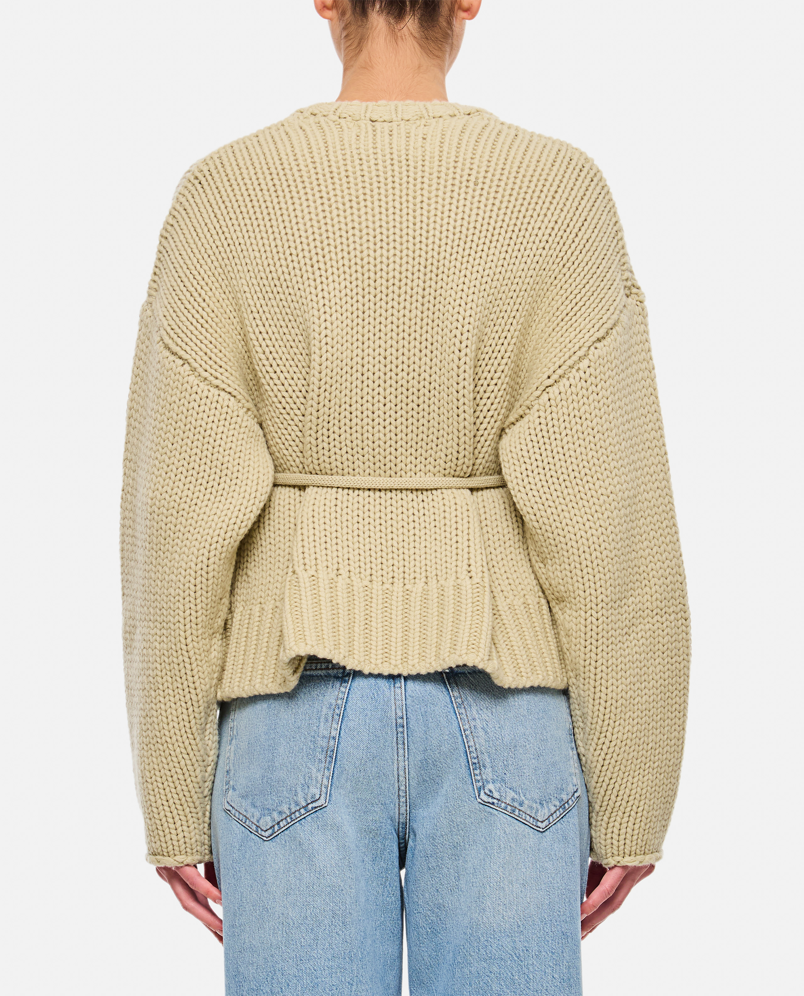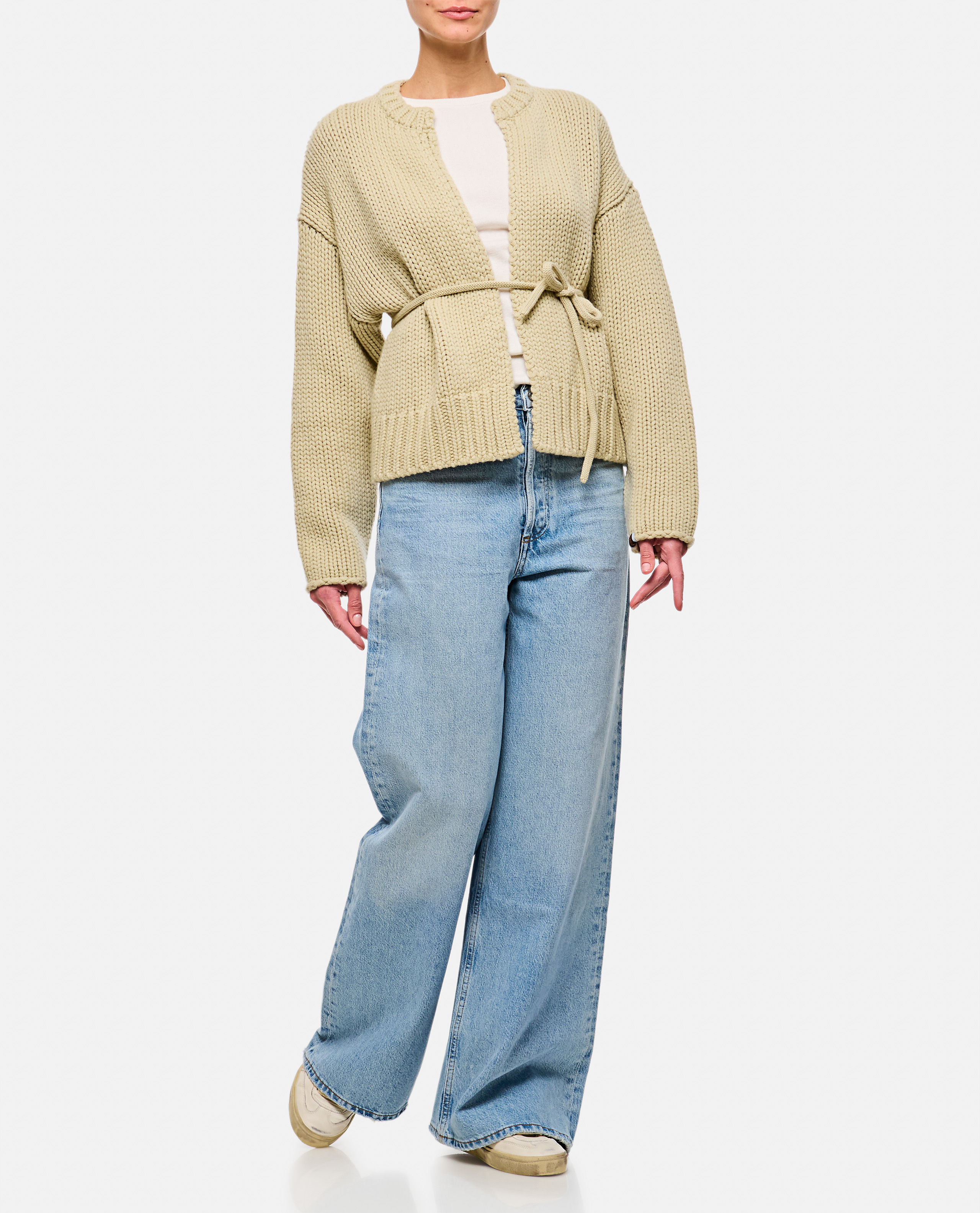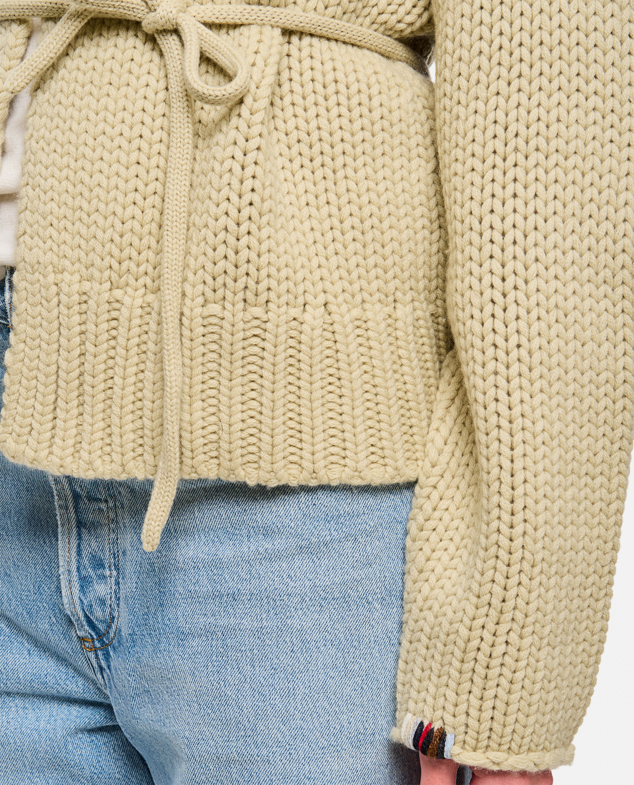 Chunky hand-knitted cashmere cardigan.Boxy open-front cardigan comes with a hand-knitted cord to close, like a belt.Color: desert.