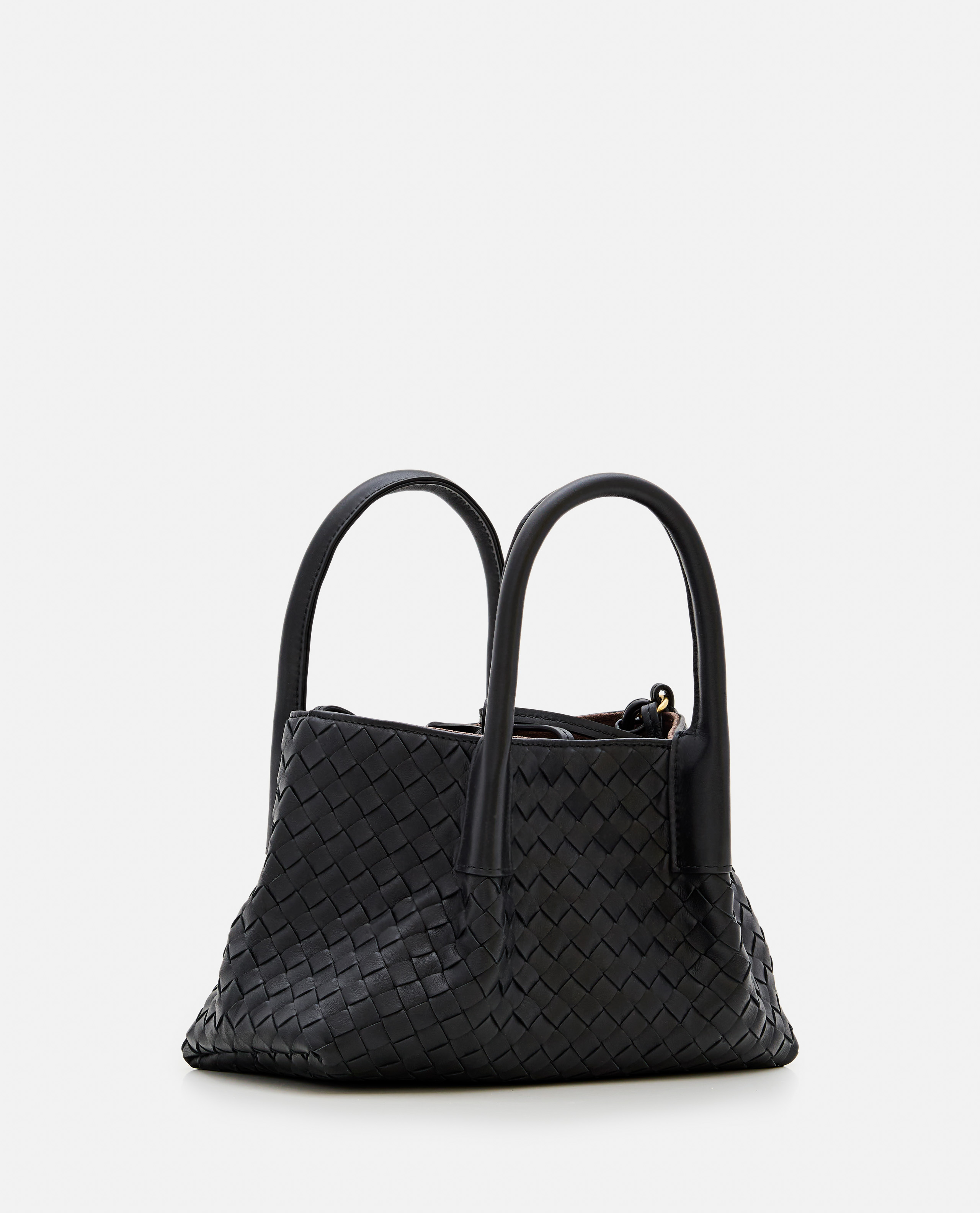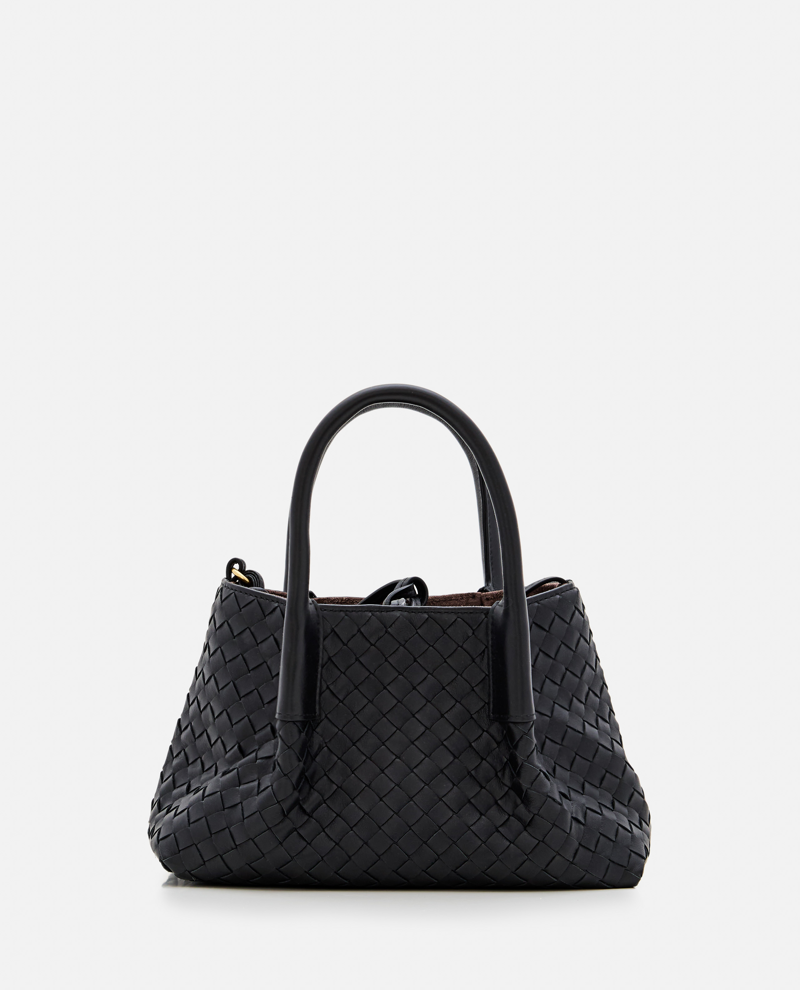 Black calfskin leather.Two top handles.Removable zipped pouch.Suede lining.Drawstring closure on open top.