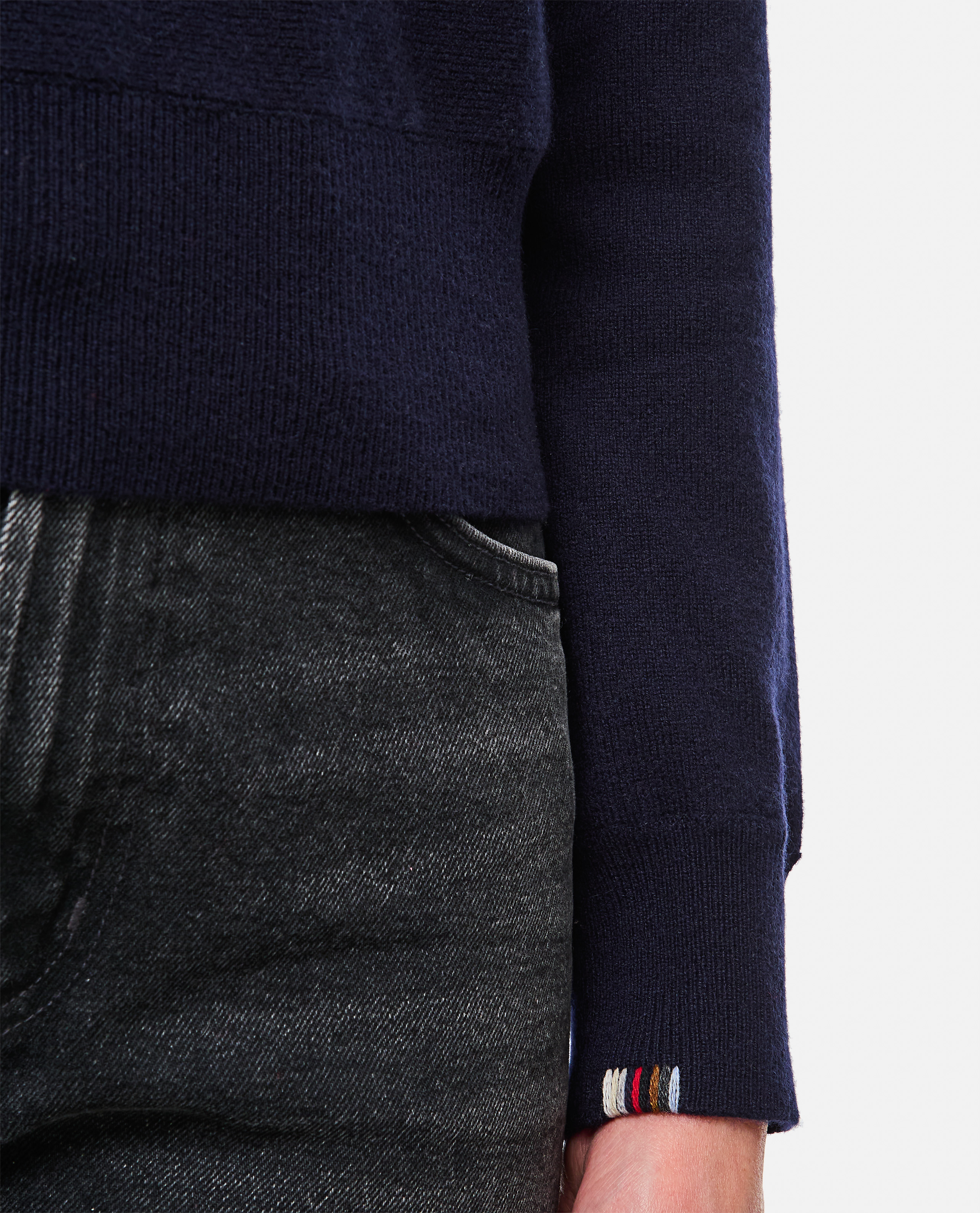 Cashmere blend.Knitted design.Crew neck.Cut-out detail.Long sleeves.Ribbed hem and cuffs.Colour: navy.