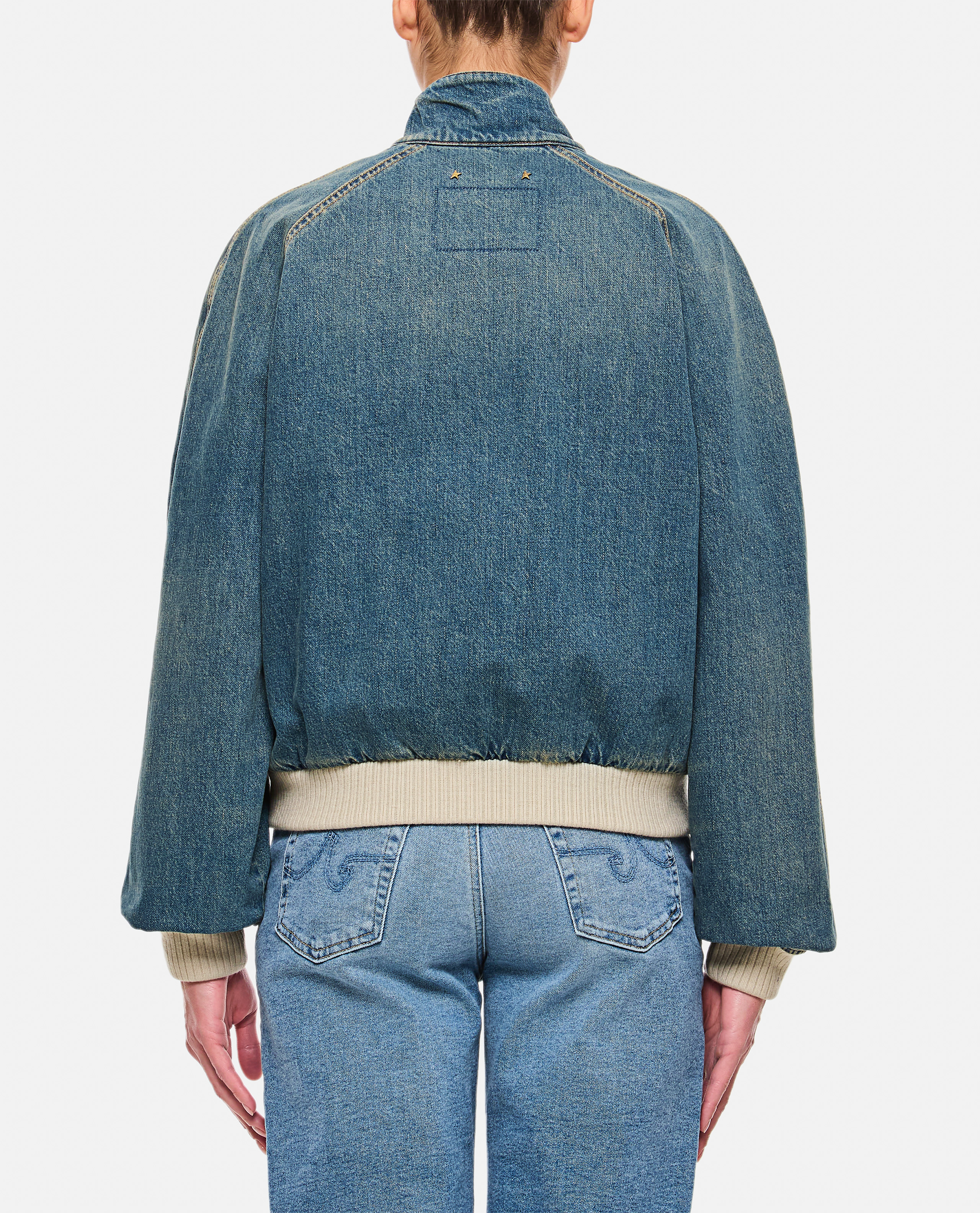 Color: denim blueDouble gold star on the backEcru-colored ribsFour front pocketsTwo inside pocketsDistressed finishZip fasteningRegular fit