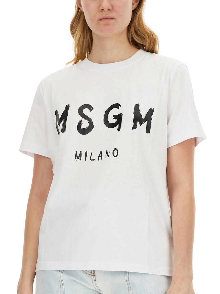 > 티셔츠 GIROCOLLO IN 져지 DI COTONE CON STAMPA 로고 PENNELLATO