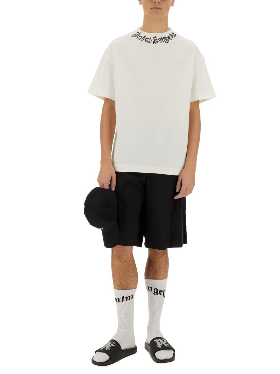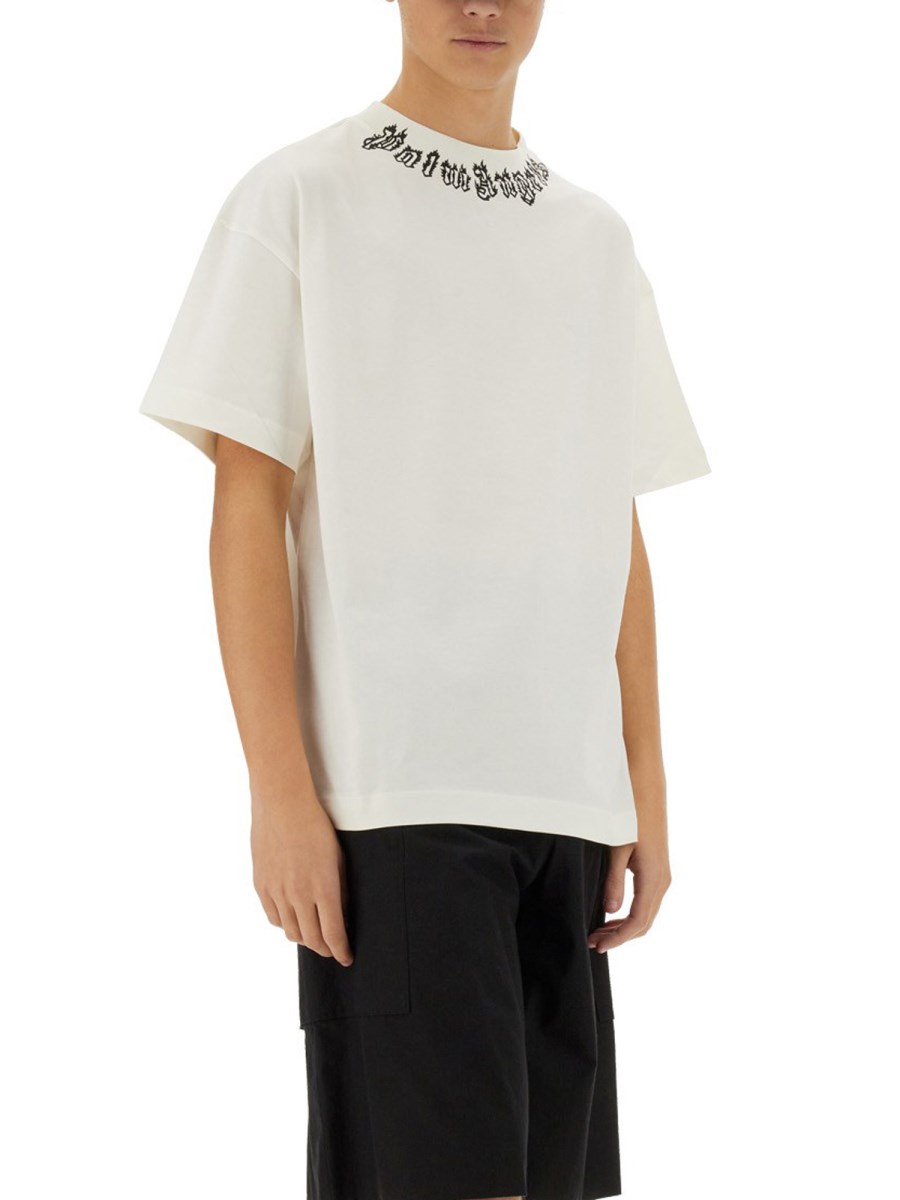 > 레귤러 핏 코튼 티셔츠 위드 로고 프린트 ON 넥