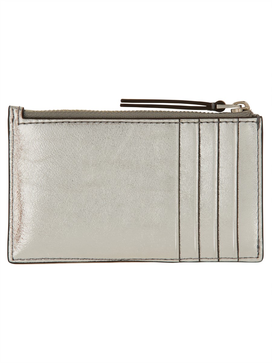 메탈릭 레더 KIRA 카드 케이스 위드 다이아몬드 QUILTING AND 지퍼