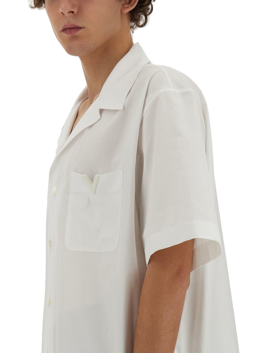 코튼 포플린 볼링 셔츠 위드 RUBBERIZED V 디테일