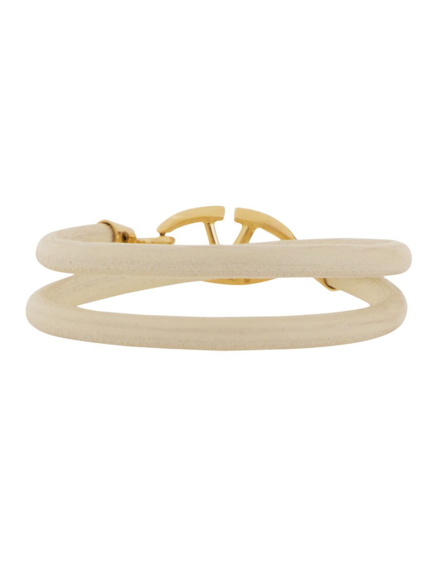 > 더블 트위스트 레더 팔찌 위드 브이로고
