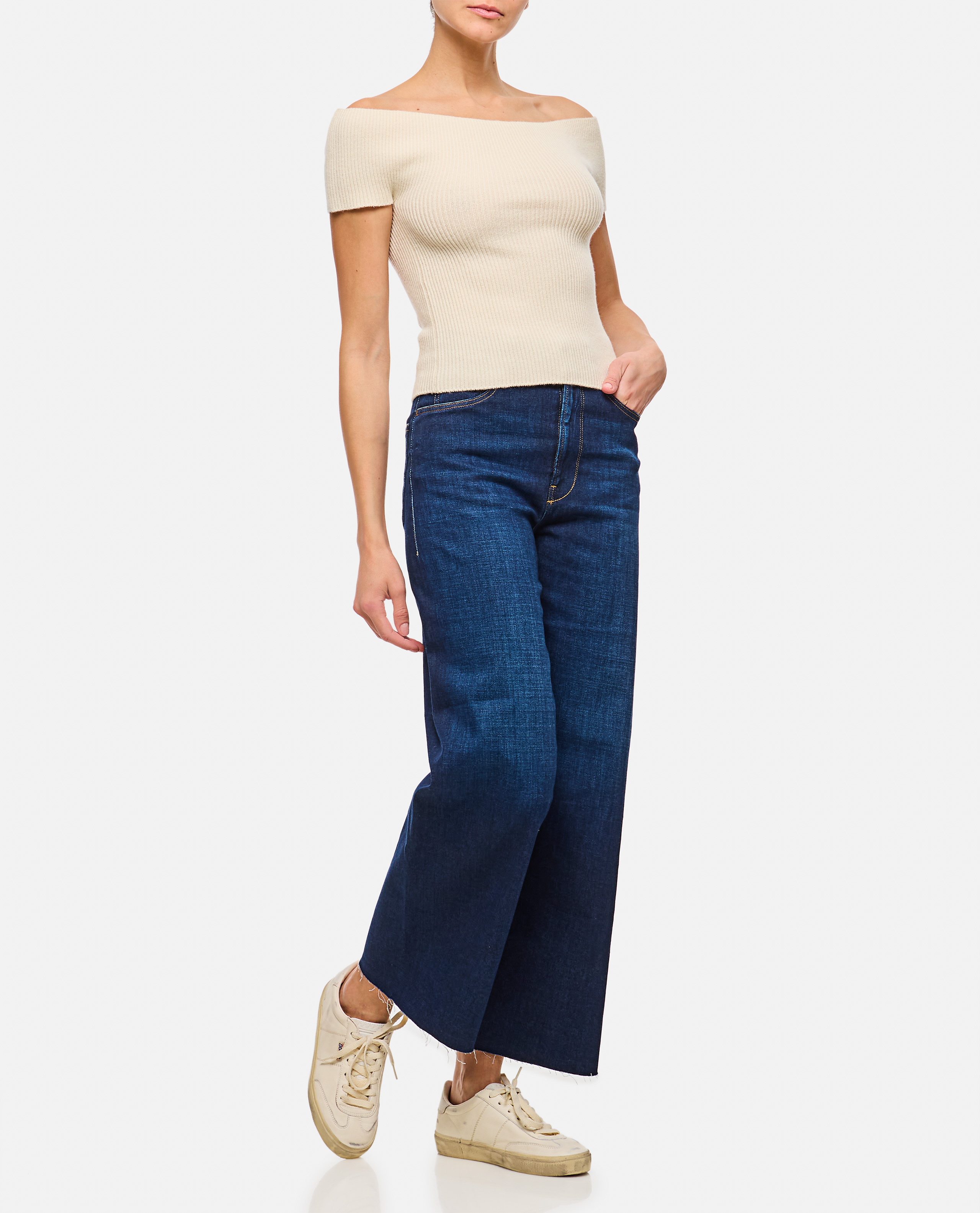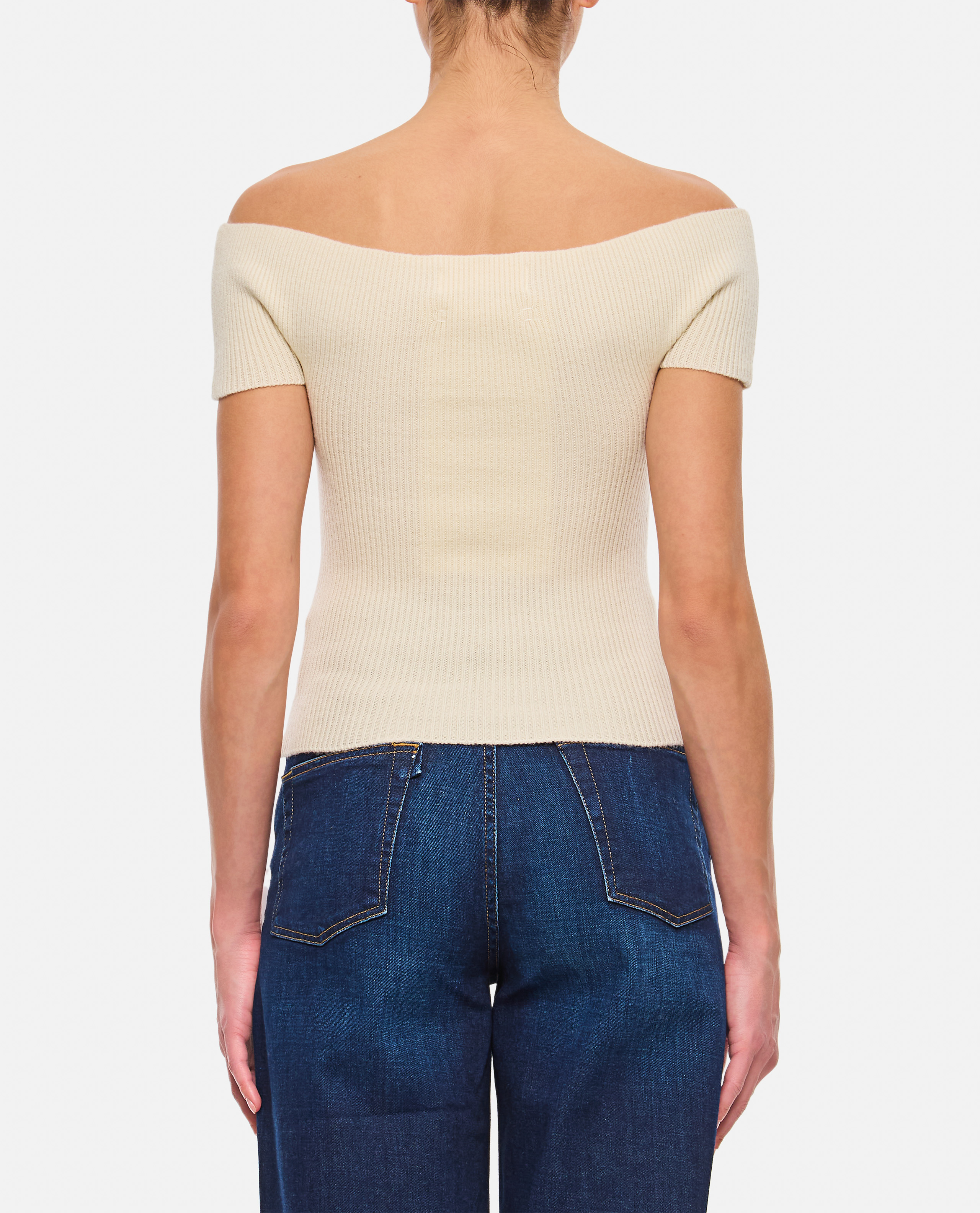 Cropped off-shoulder top. Short sleeves. Color: cream