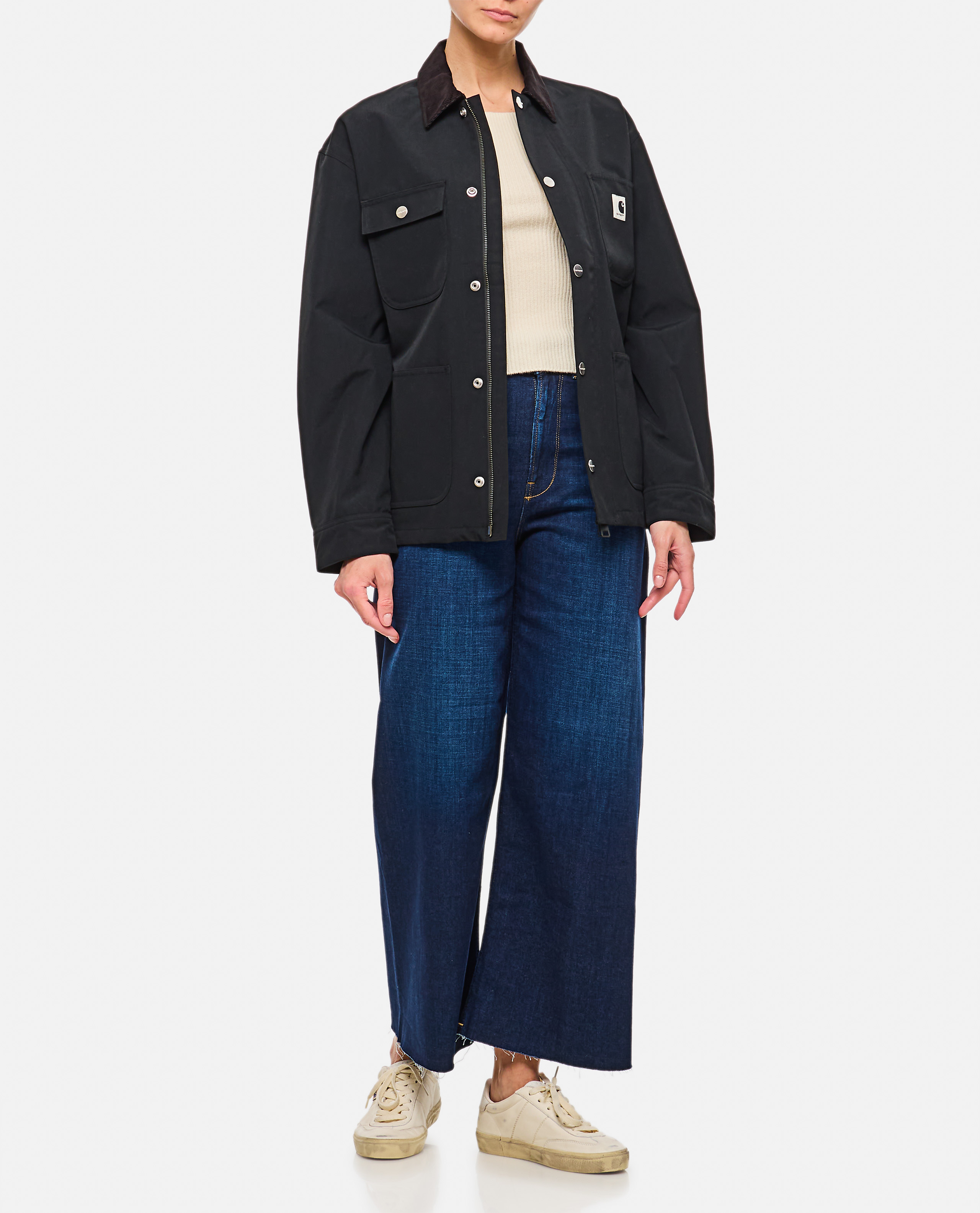 Cotton jacket with zip fastener and clip buttons.Branded breast pocket.Velvet collar.