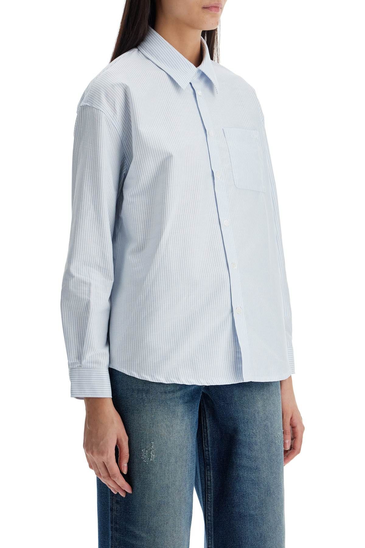 Made from organic cotton Oxford with thin white and light blue stripes, this A