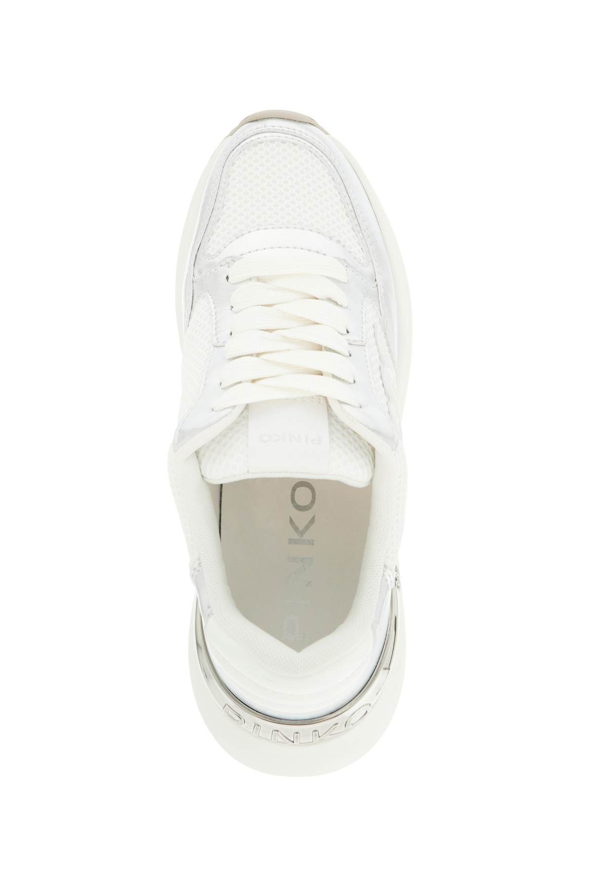 Pinko sneakers made of laminated eco-leather and mesh with iconic Love Birds logo on the side