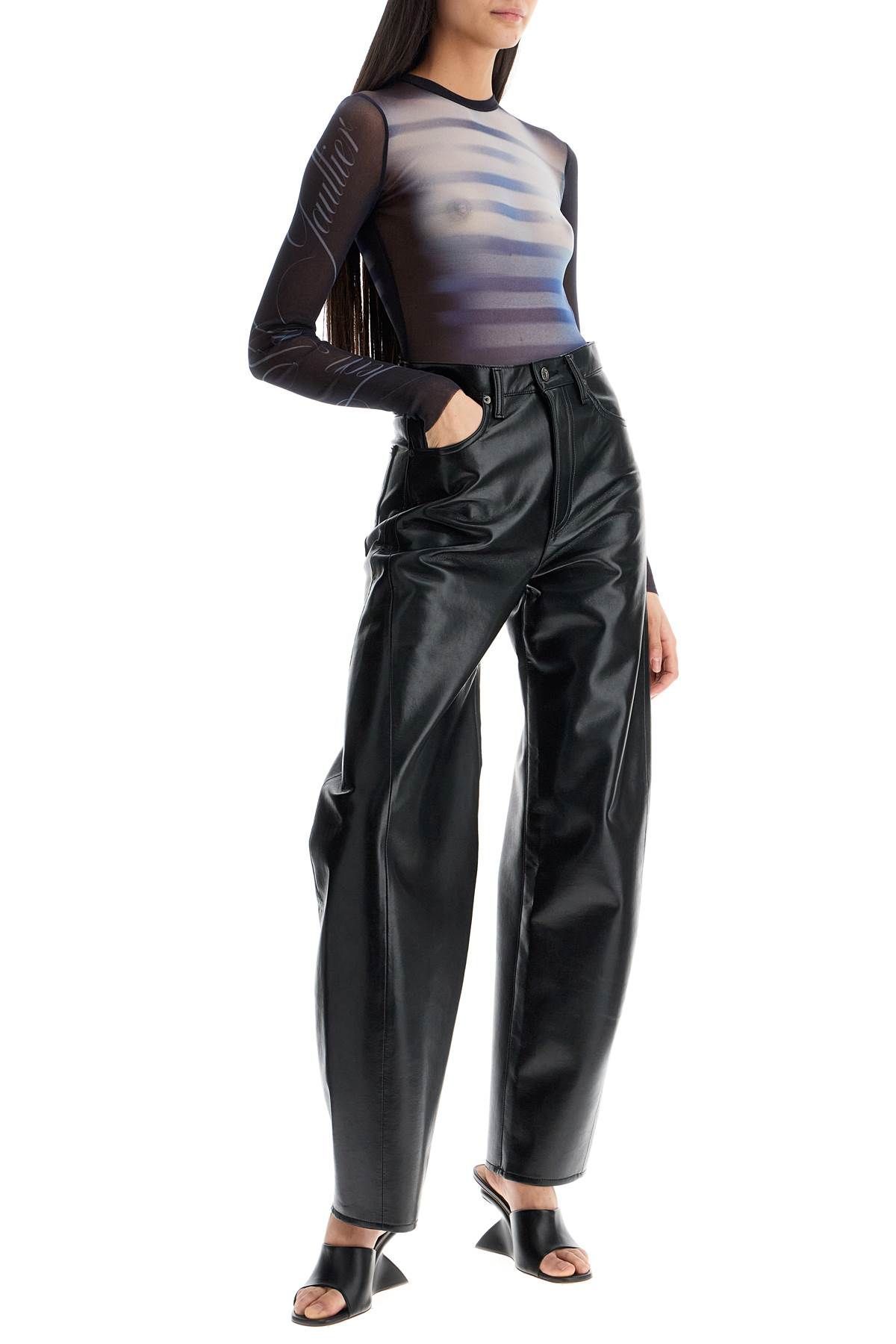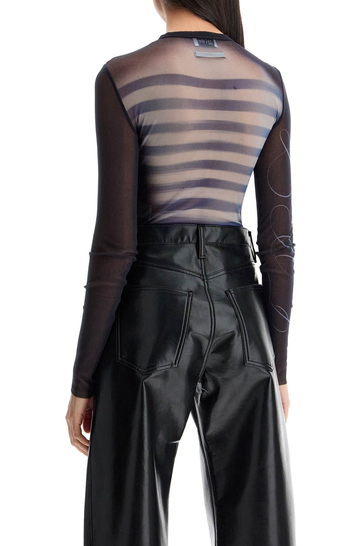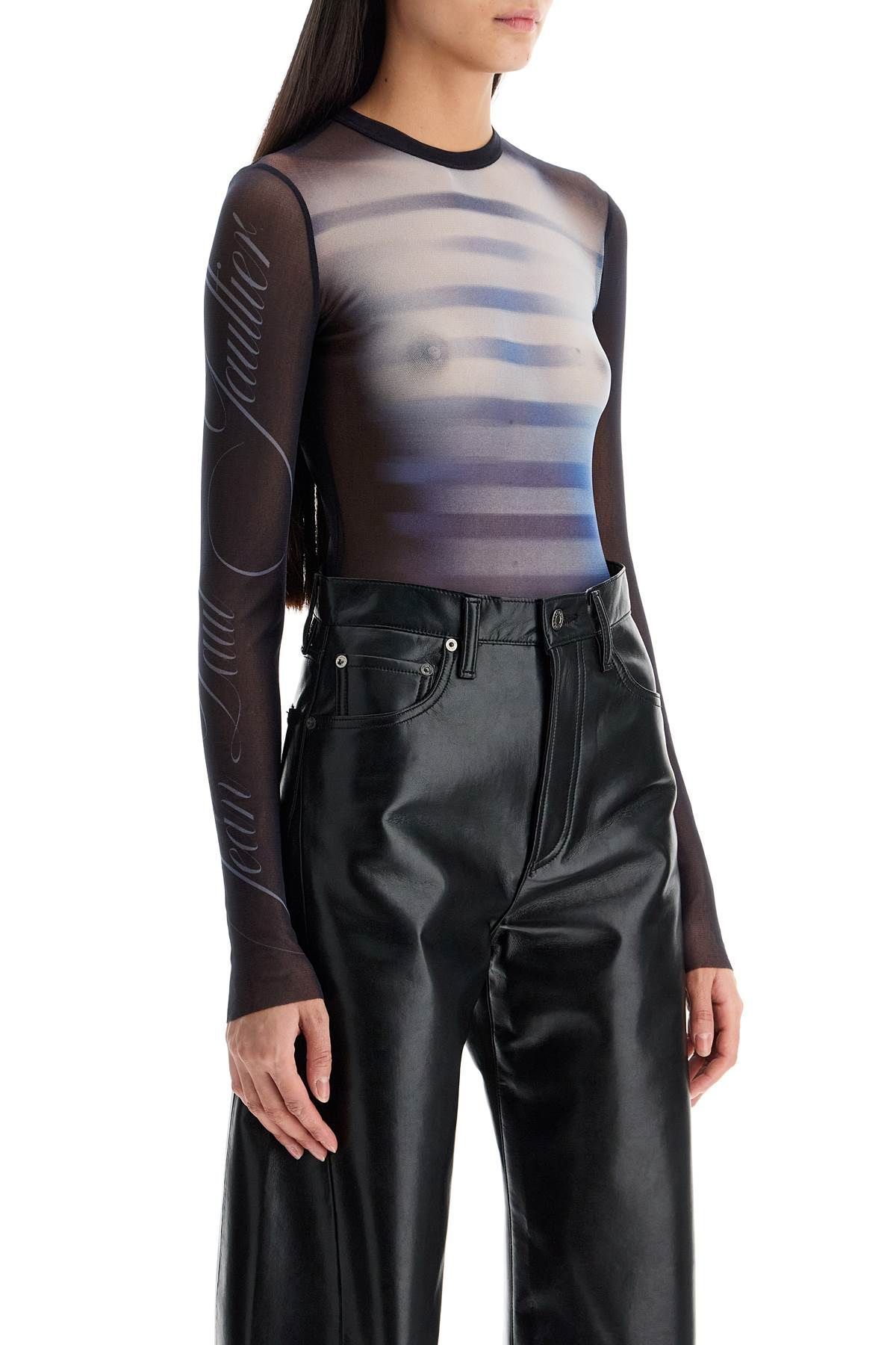 Long-sleeved body by Jean Paul Gaultier made of mesh with graphic print and logo lettering on the right sleeve