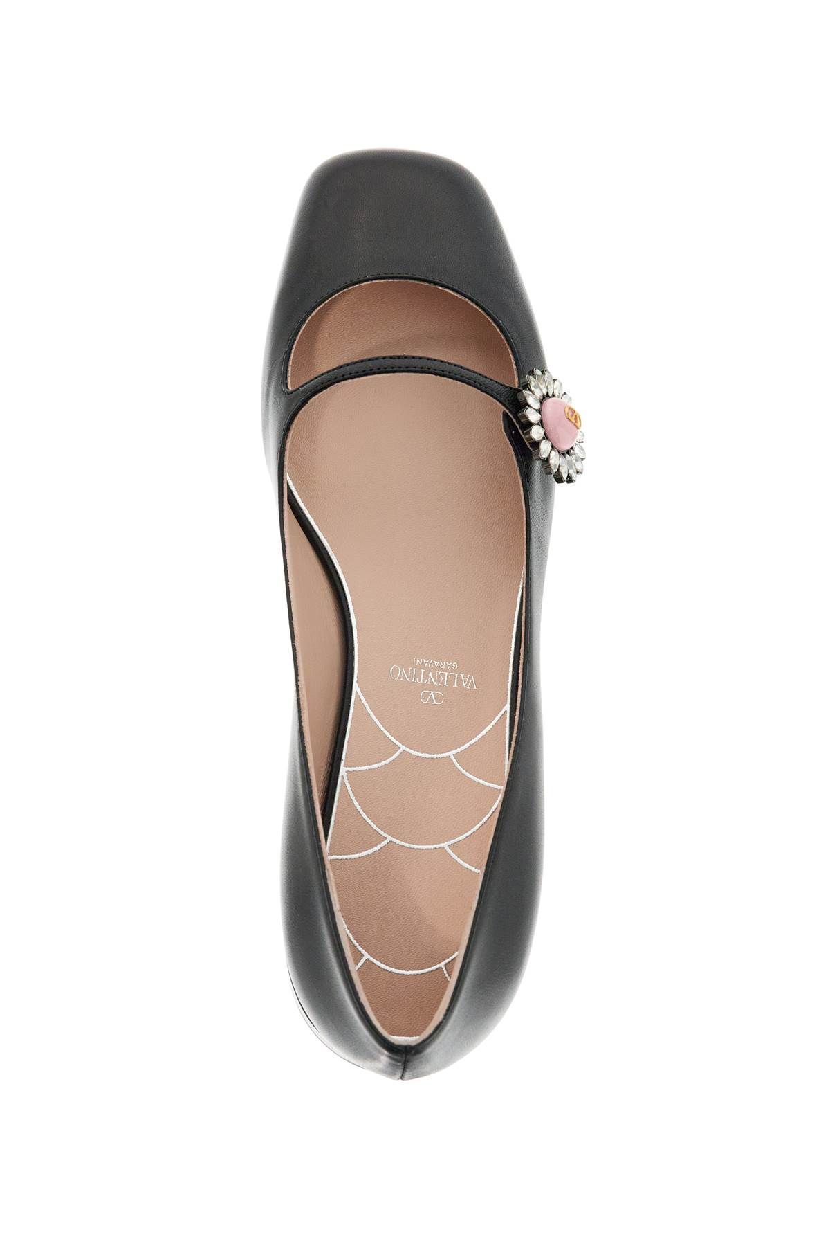 Valentino Garavani's Mary-Jane Preshoes ballerinas are made of smooth leather and embellished with a jewel button in the shape of a daisy, complete with VLogo Signature and crystals