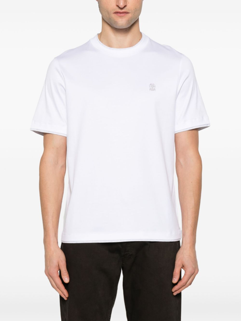 white crew neck short sleeves embroidered logo at the chest