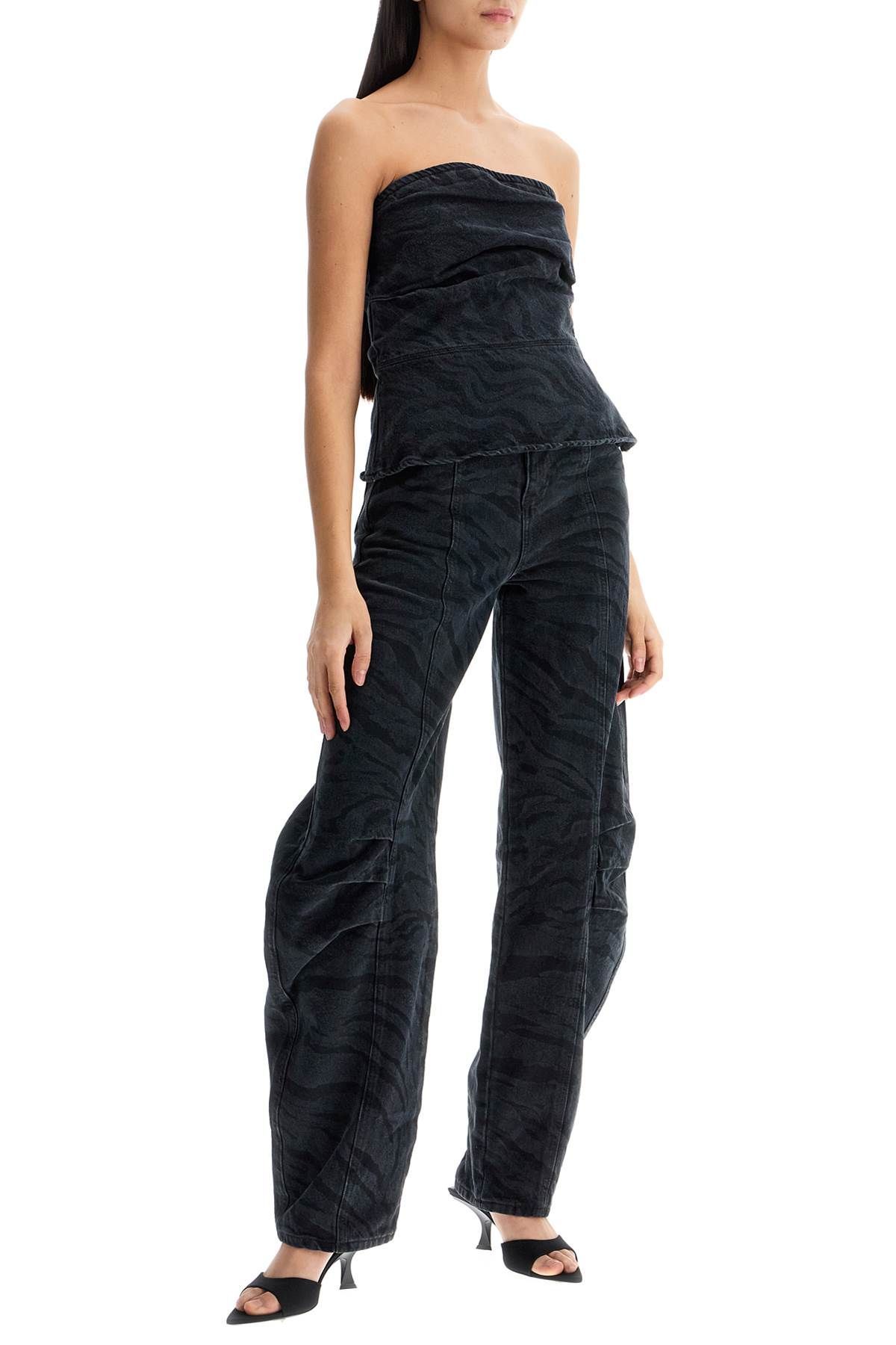 Rotate's Jeans Barrel are made of recycled cotton denim with a zebra print