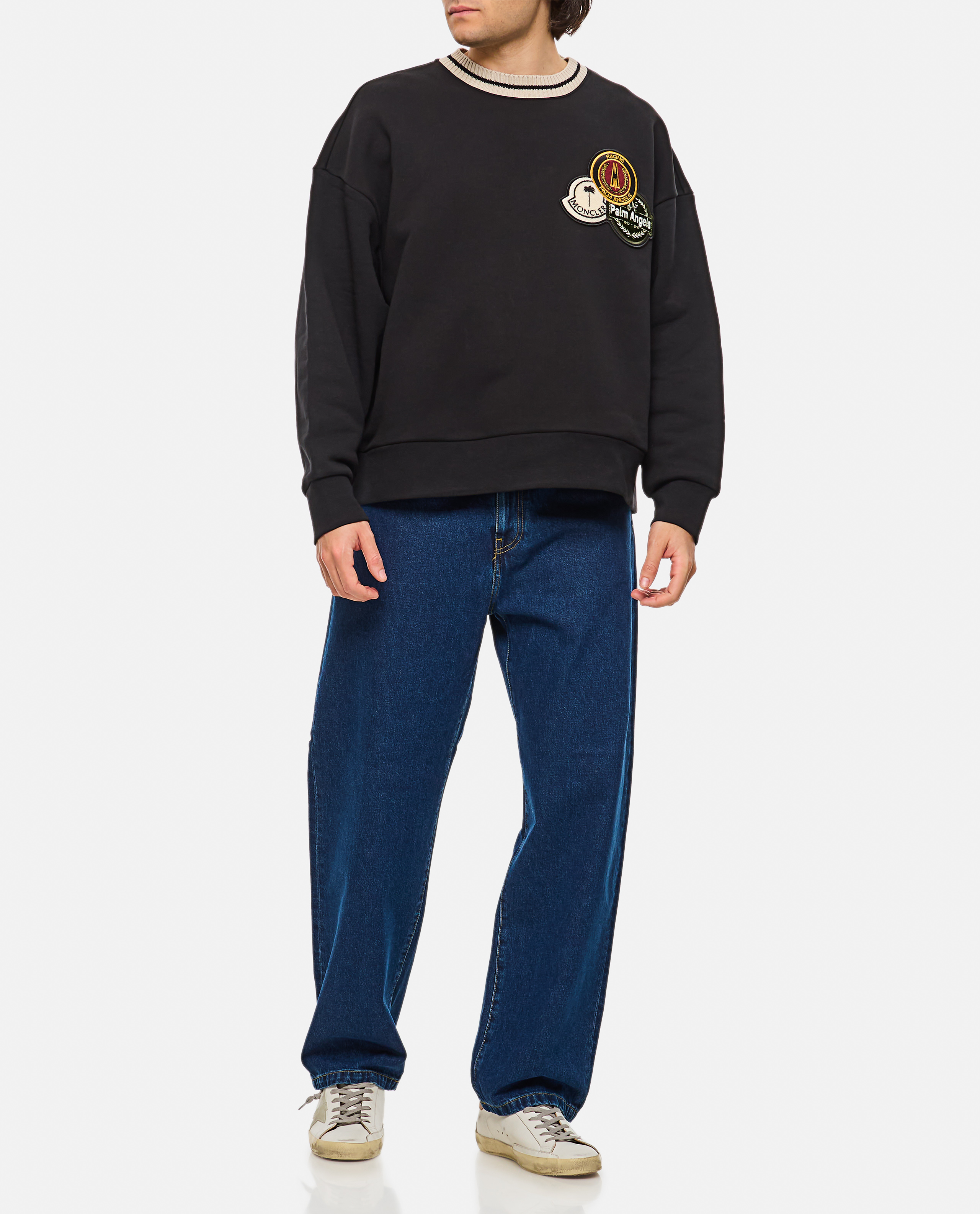 Round neck.Long sleeve.Ribbed cuffs and hem.Embroidered logo patches.Color: black.