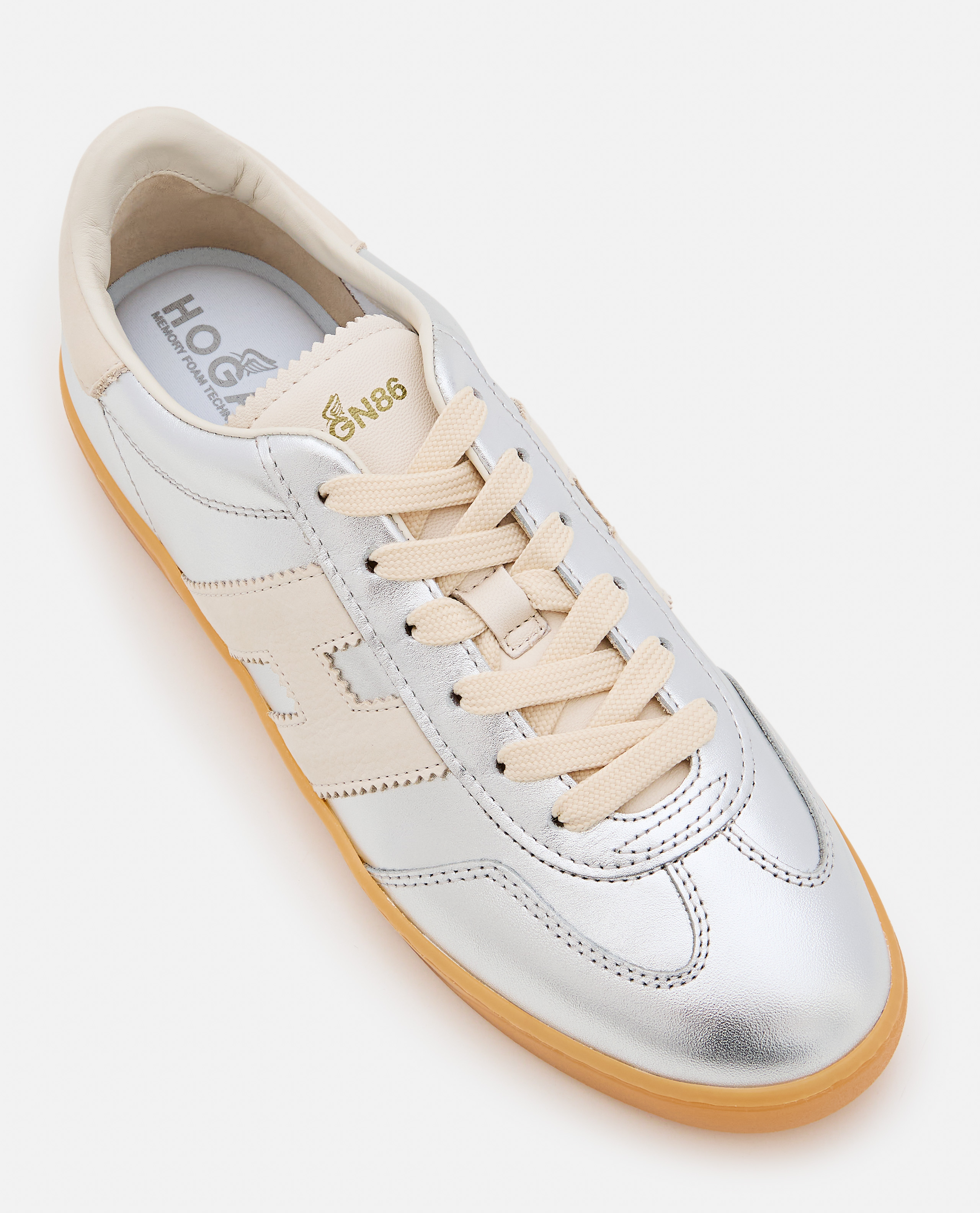 Lace up shoes.Leather upper.Rubber sole.Side logo detail.Color: silver