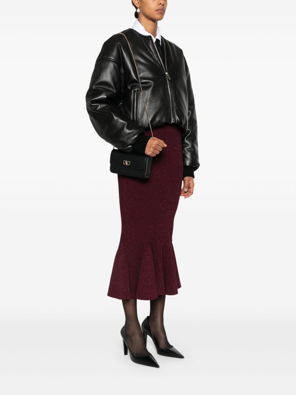black calf leather smooth grain VLogo Signature to the front foldover top with magnetic fastening detachable chain-link shoulder strap front flap pocket main compartment internal card slots internal logo stamp leather lining This piece comes complete with a protective dust bag.