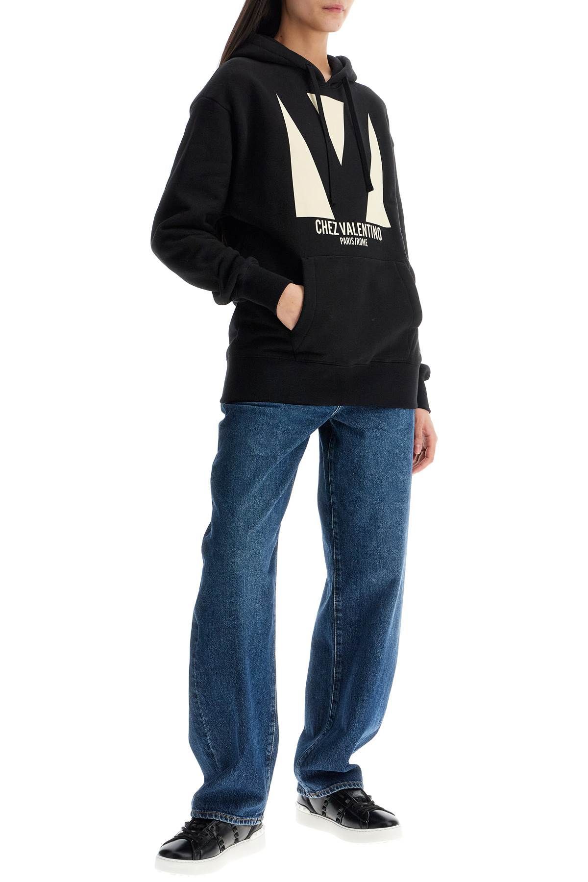 This oversized Valentino sweatshirt is made of pure cotton French terry with a 'Chez Valentino' graphic print on the front