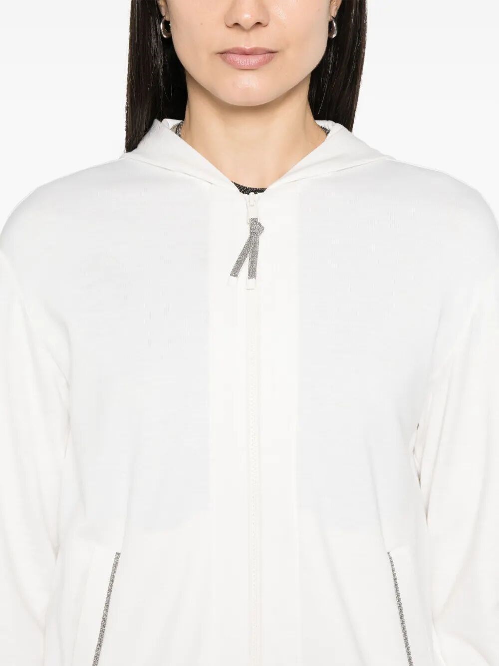 > 코튼 And 실크 인터락 후드 스웨트 셔츠 위드 Precious 지퍼 풀