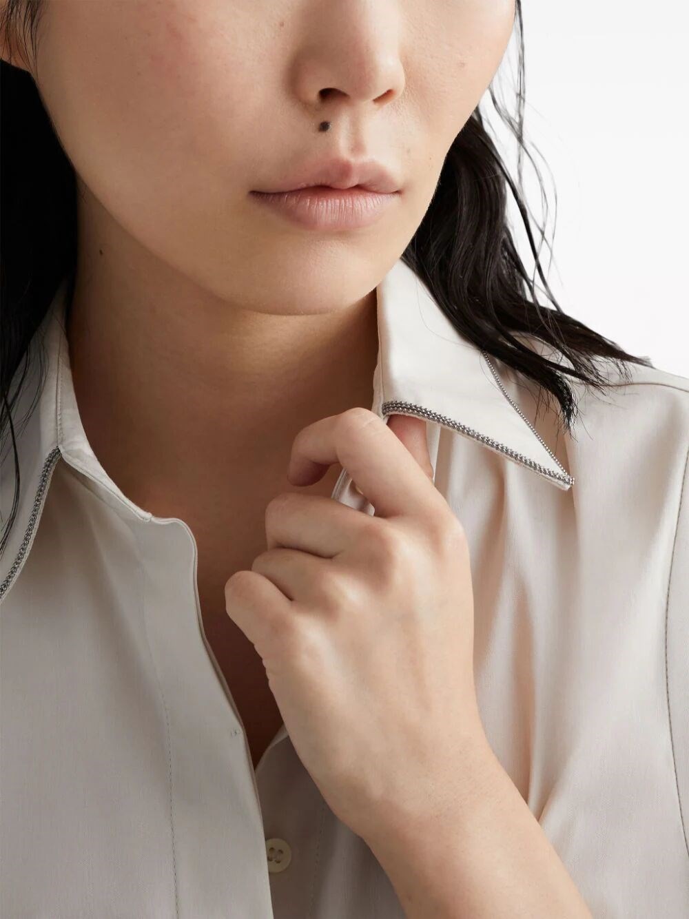 > 스트레치 코튼 포플린 슬리브리스 셔츠 위드 샤이니 Trim