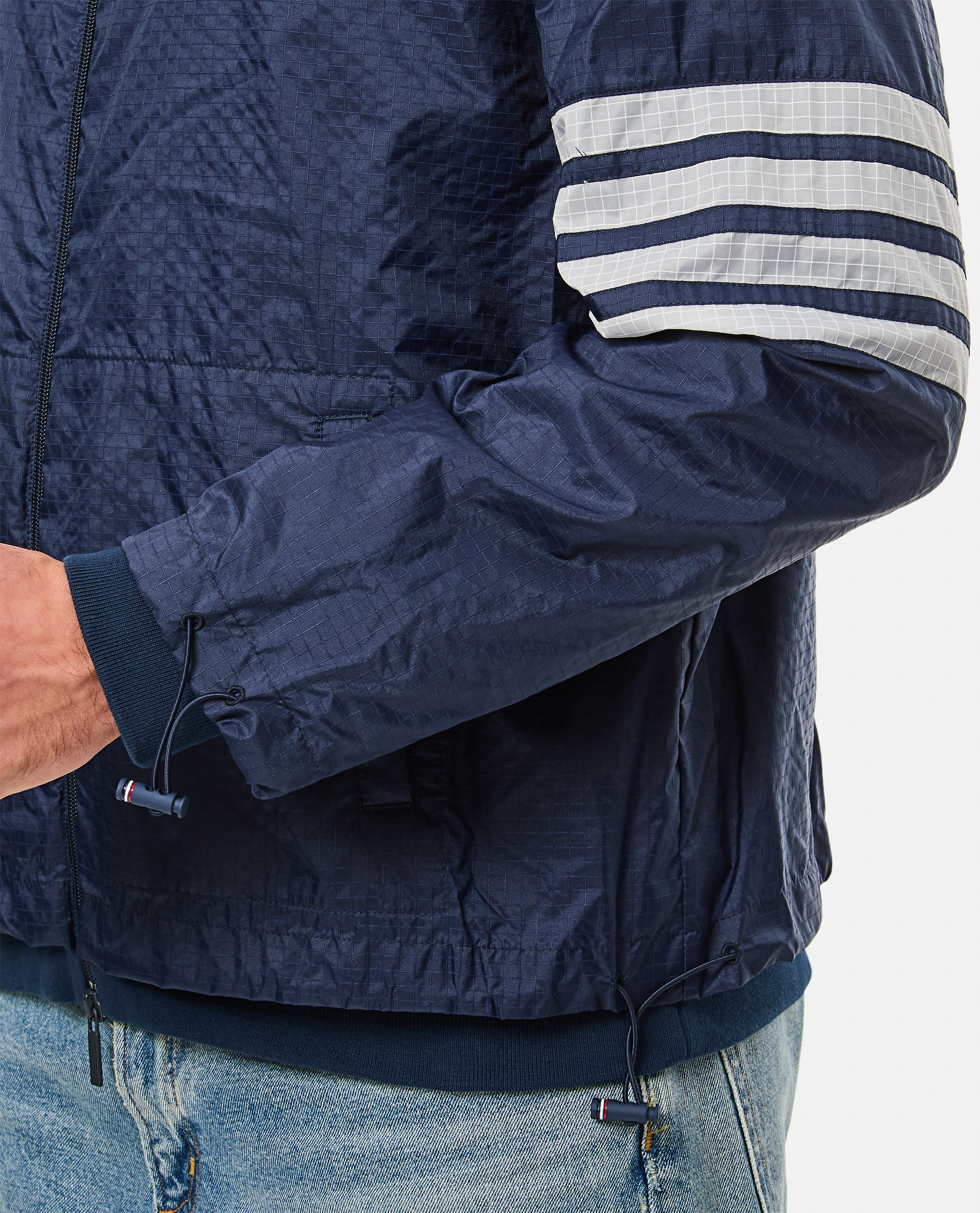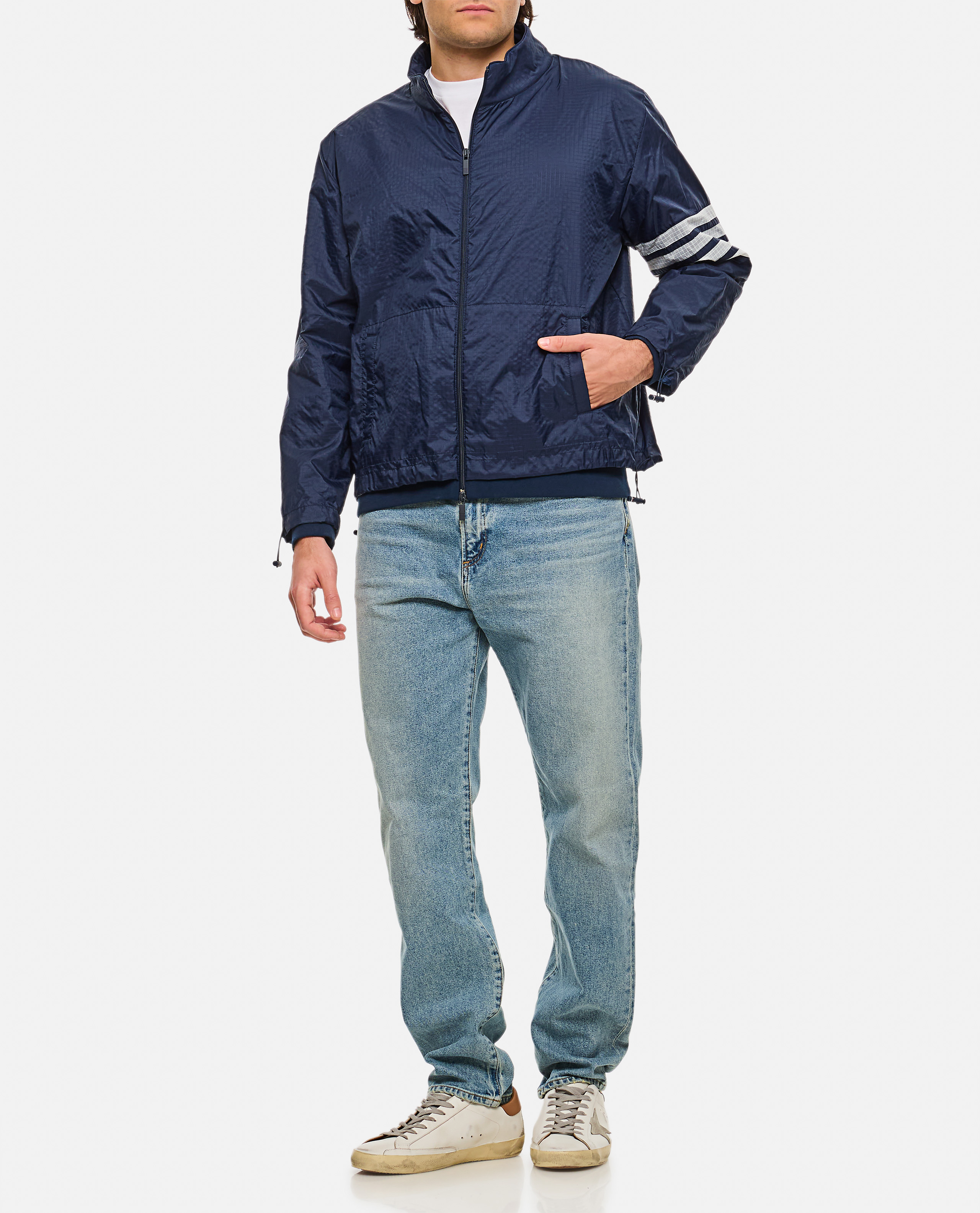 High collar ripstop jacket.Zip closure.4 bars on the sleeve.Color: blue