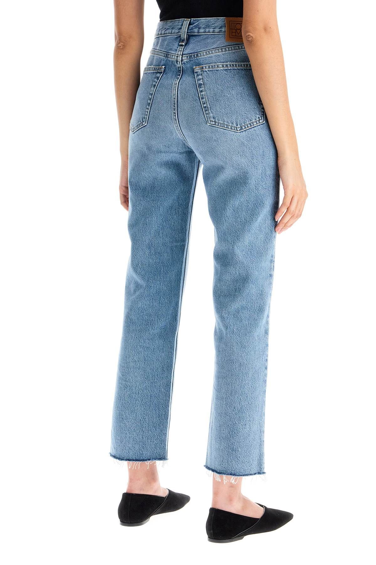 Cut from worn-effect light blue wash organic cotton denim, these Toteme jeans come in a straight-leg silhouette with a raw-cut cropped hem and high waist