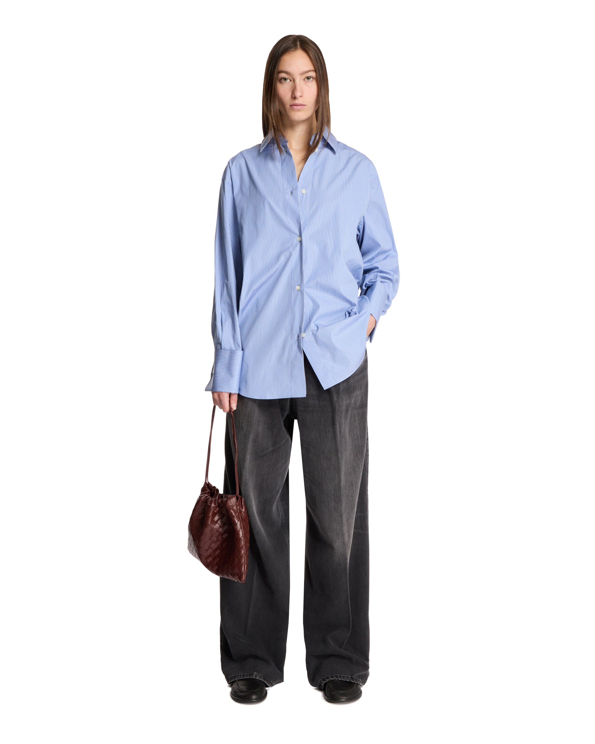 Blue Striped Oversized Shirt: buy the product by ROHE from. Enter the site and find out more details.