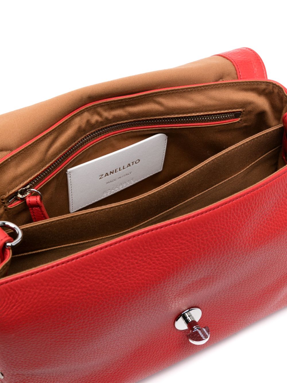 poppy red twist-lock fastening adjustable detachable shoulder strap single flat top handle partitioned compartment