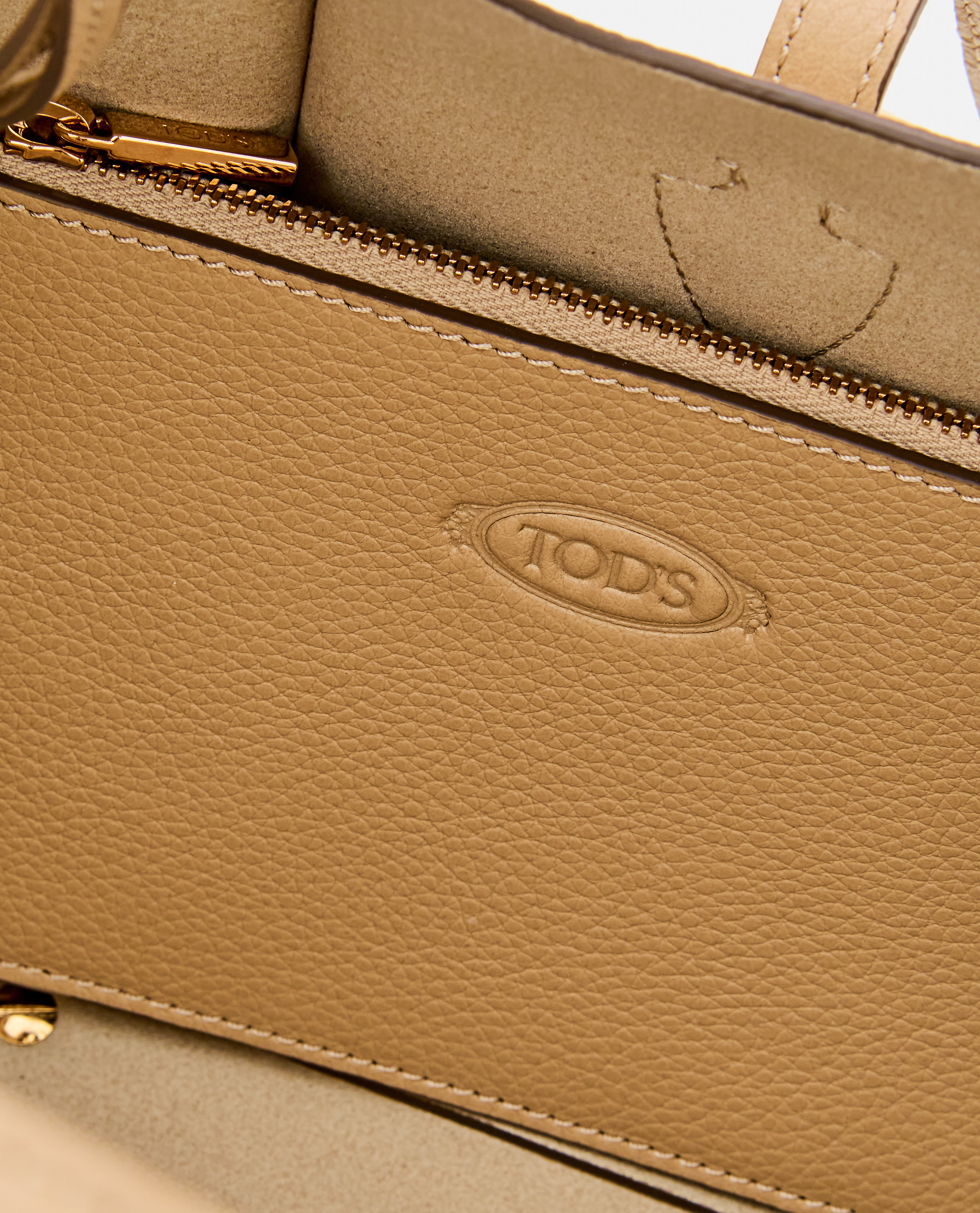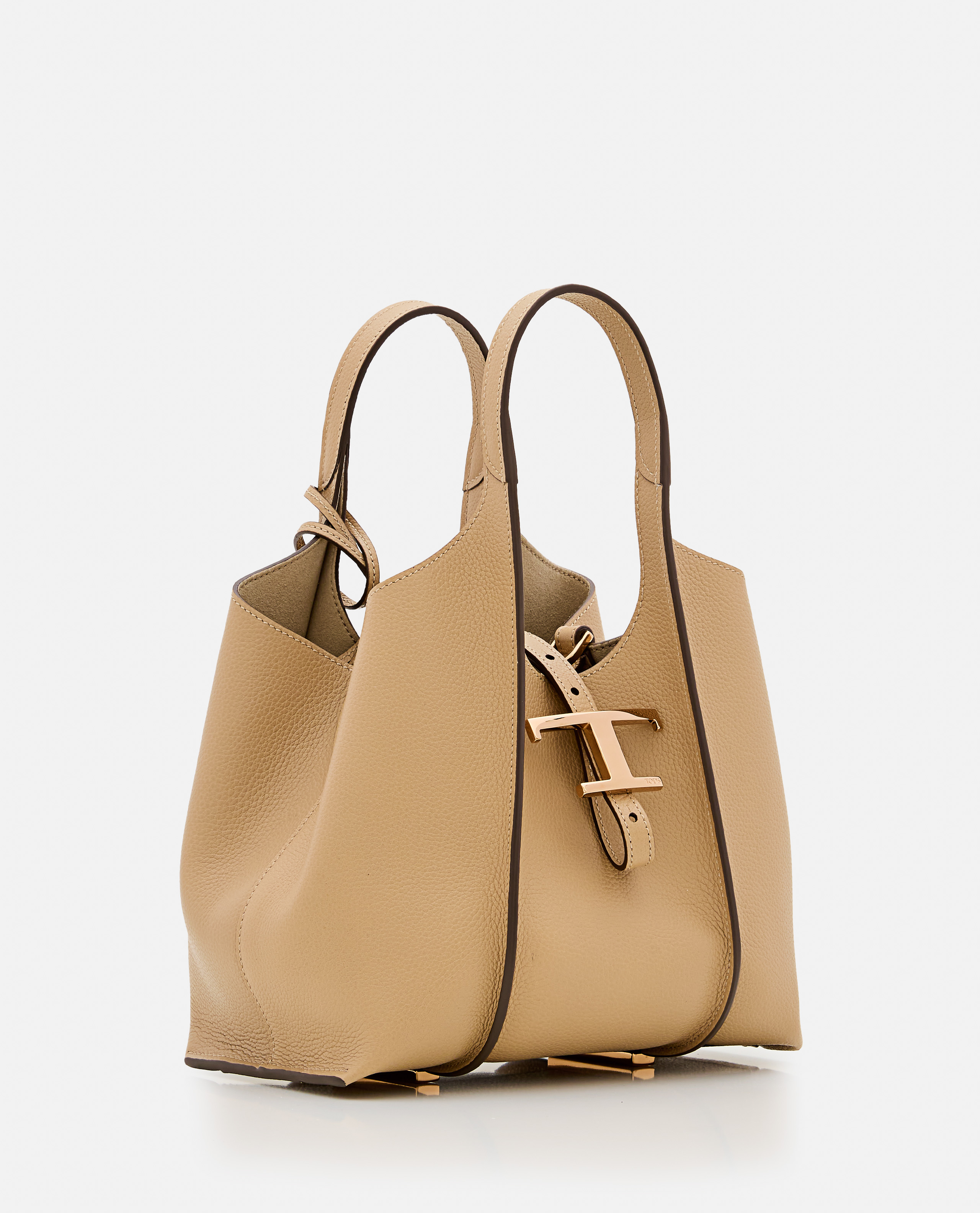 Small TSB shopping bag with leather shoulder strap by Tod's. Metal accessories with T Timeless branding. Removable pouch with zip. Beige colour.
