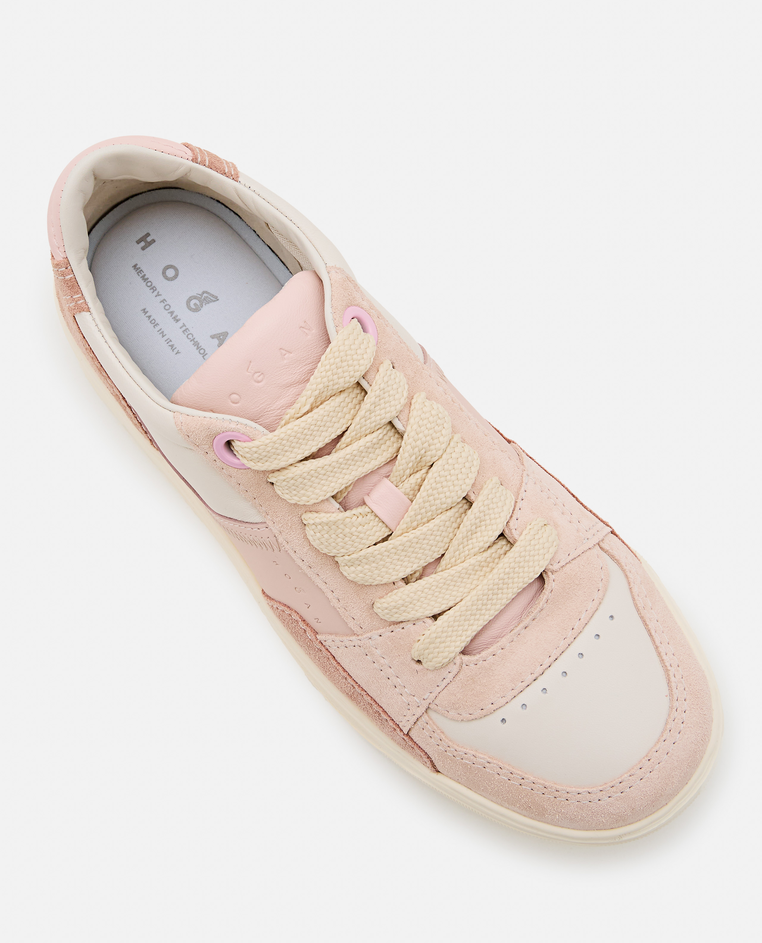 Lace up shoes.Leather upper.Rubber sole.Side logo detail.Color: pink