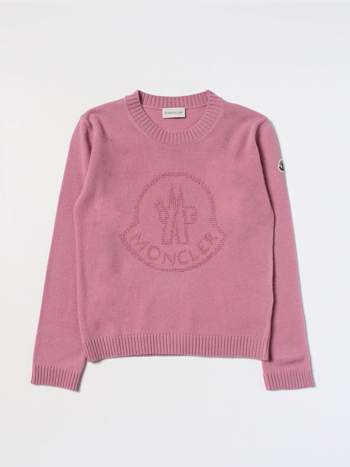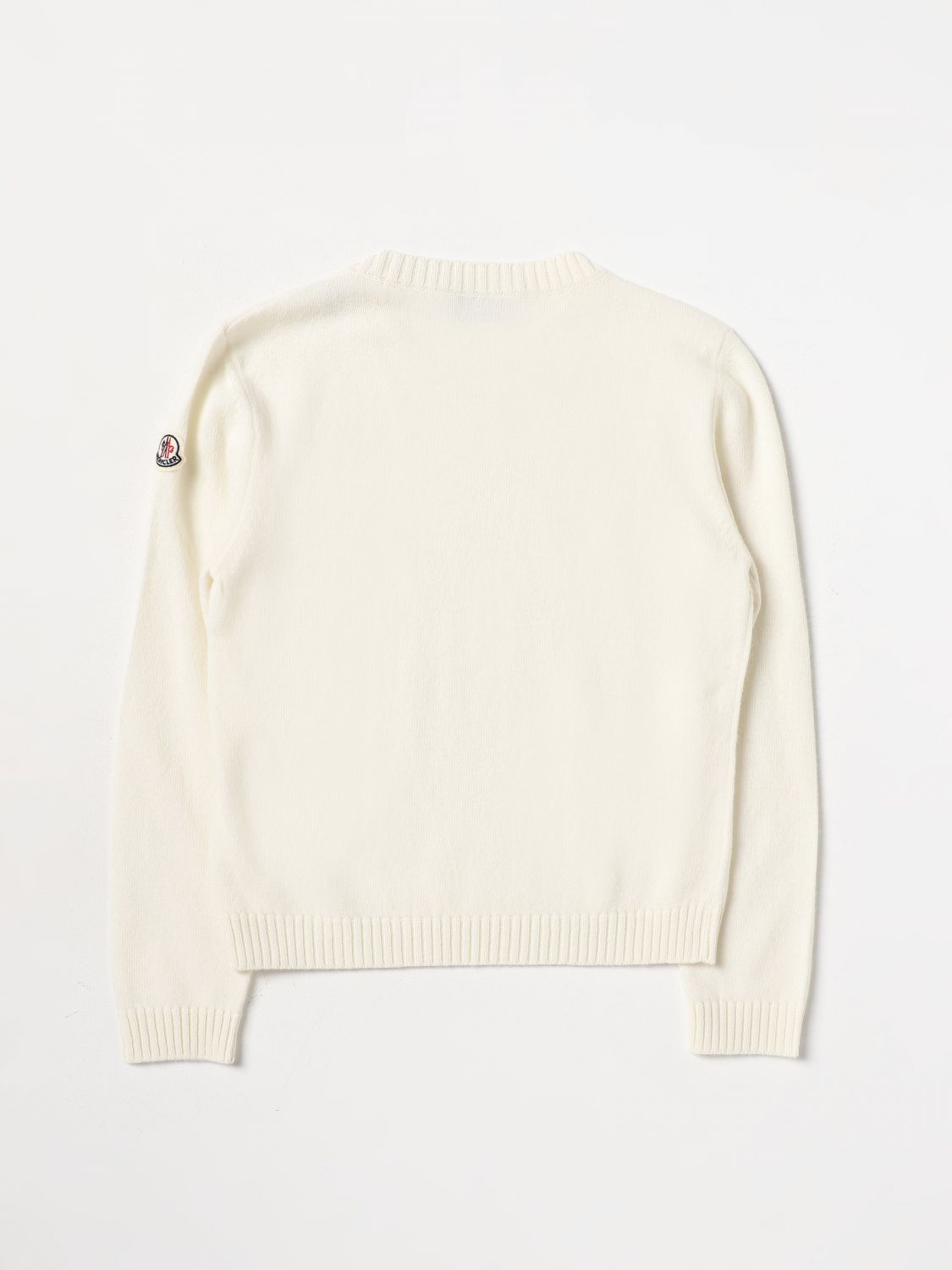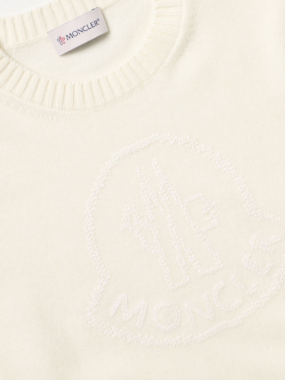 - Casual style - Regular fit - Wool - Knitted - Crew neckline - Ribbed profiles - Regular shoulders - Long sleeves - Tone-on-tone jacquard Moncler logo - Straight hem - Hand wash - Numeric size refers to age