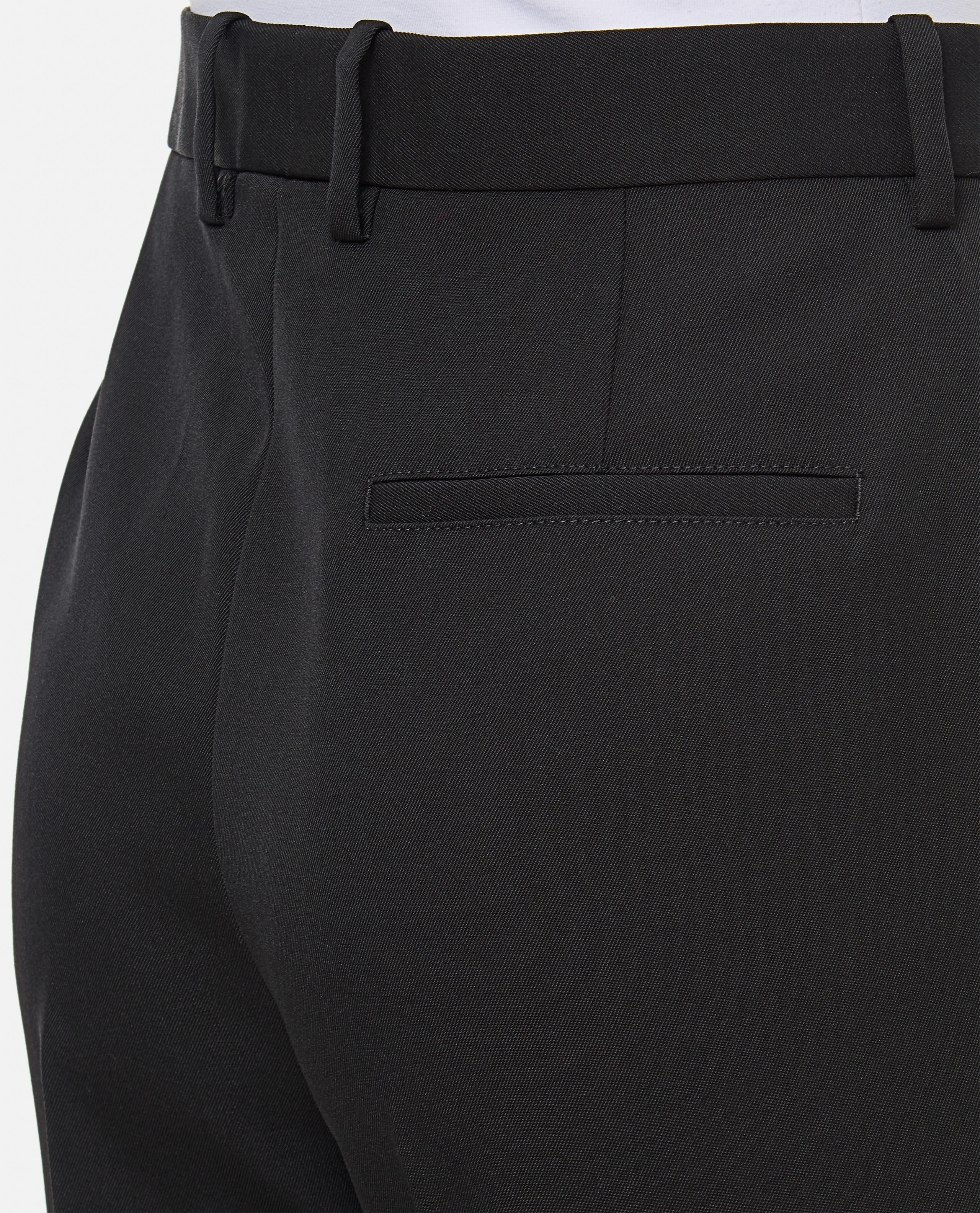 Black wool tailored pants with high waist.Belt loops.Concealed hook-and-eye and zipper closure.Side pockets.Back welt pocket.Flared leg and pressed crease.