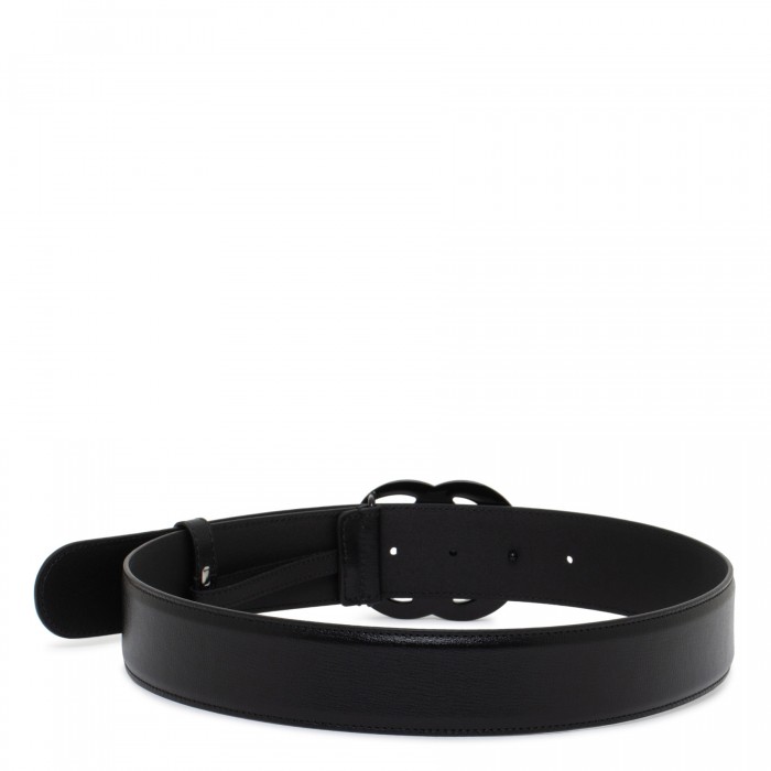 Black leather wide belt from Gucci featuring back enameled double G buckle fastening, black leather loop.