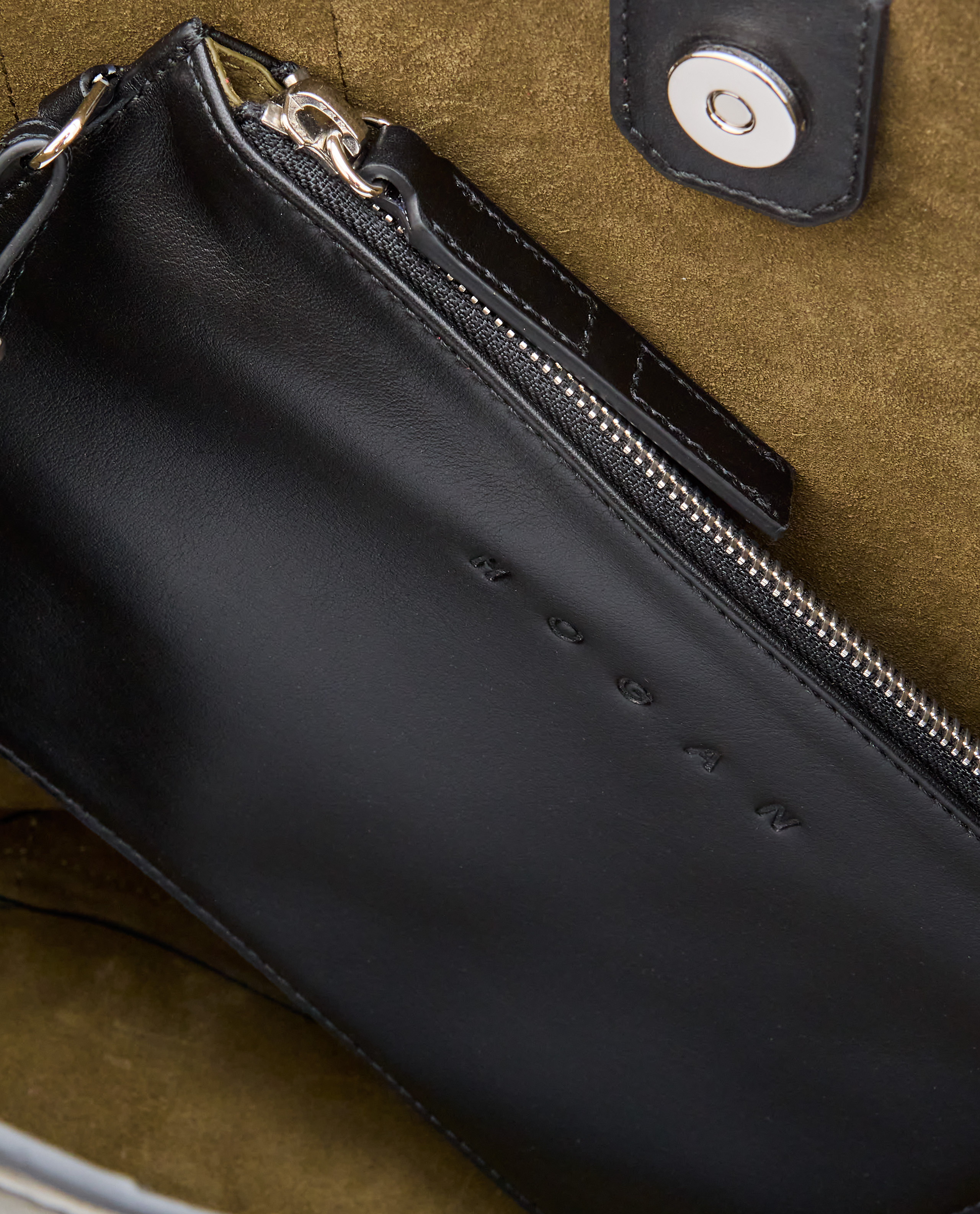 H10R Hobo medium shoulder bag in calfskin from Hogan. Magnetic closure and internal pouch with zip. Black colour. New Arrivals SS25.