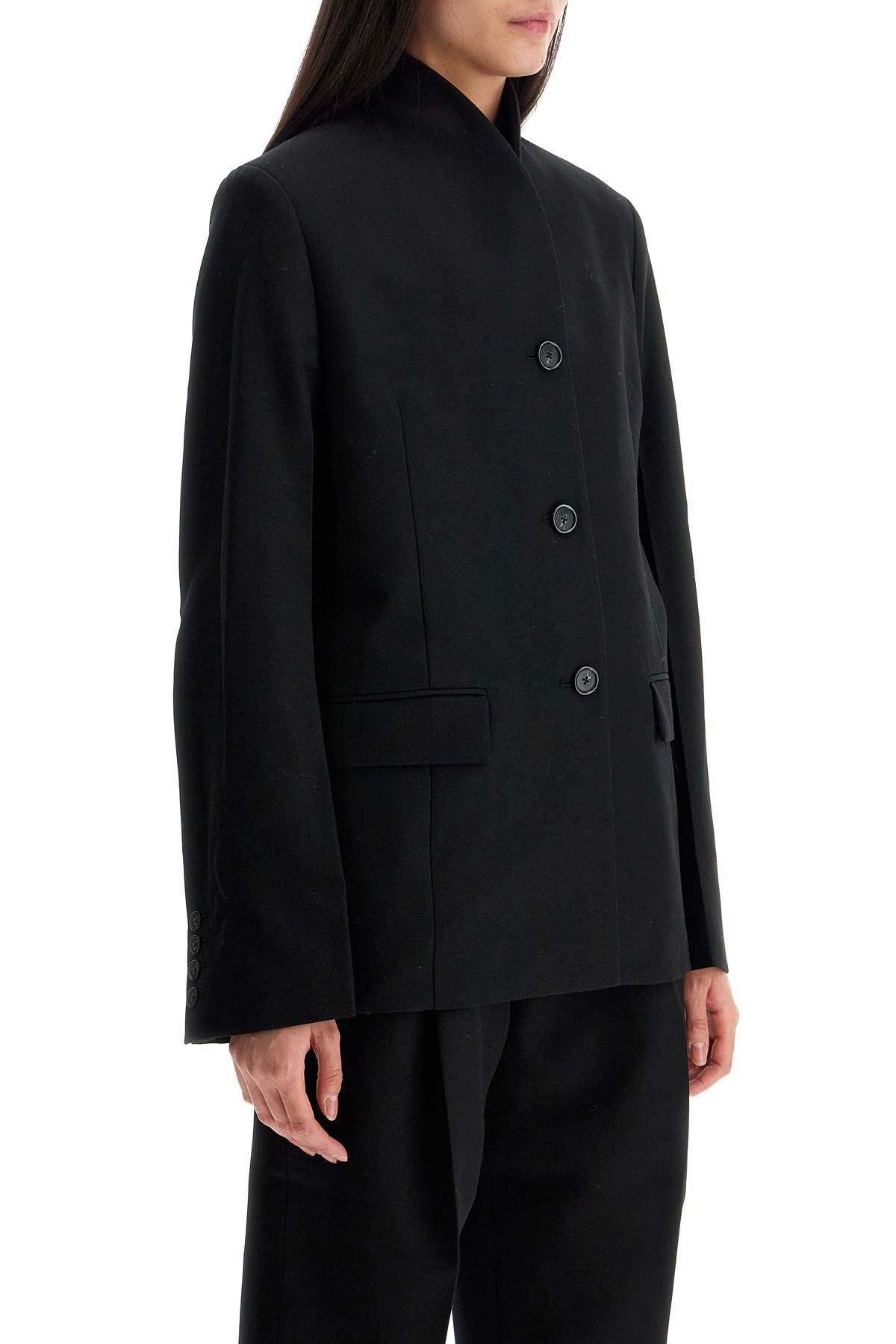 블랙 더블 브레스티드 자켓 in 리사이클 폴리에스터 and 울
