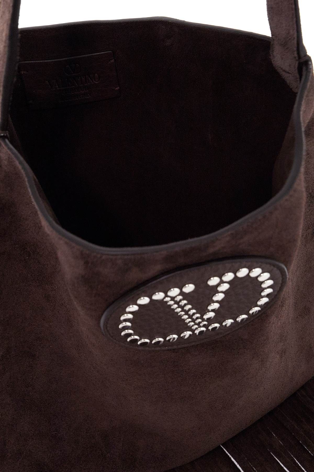 The Valentino Garavani crossbody bag in dark brown suede offers Italian elegance and functionality