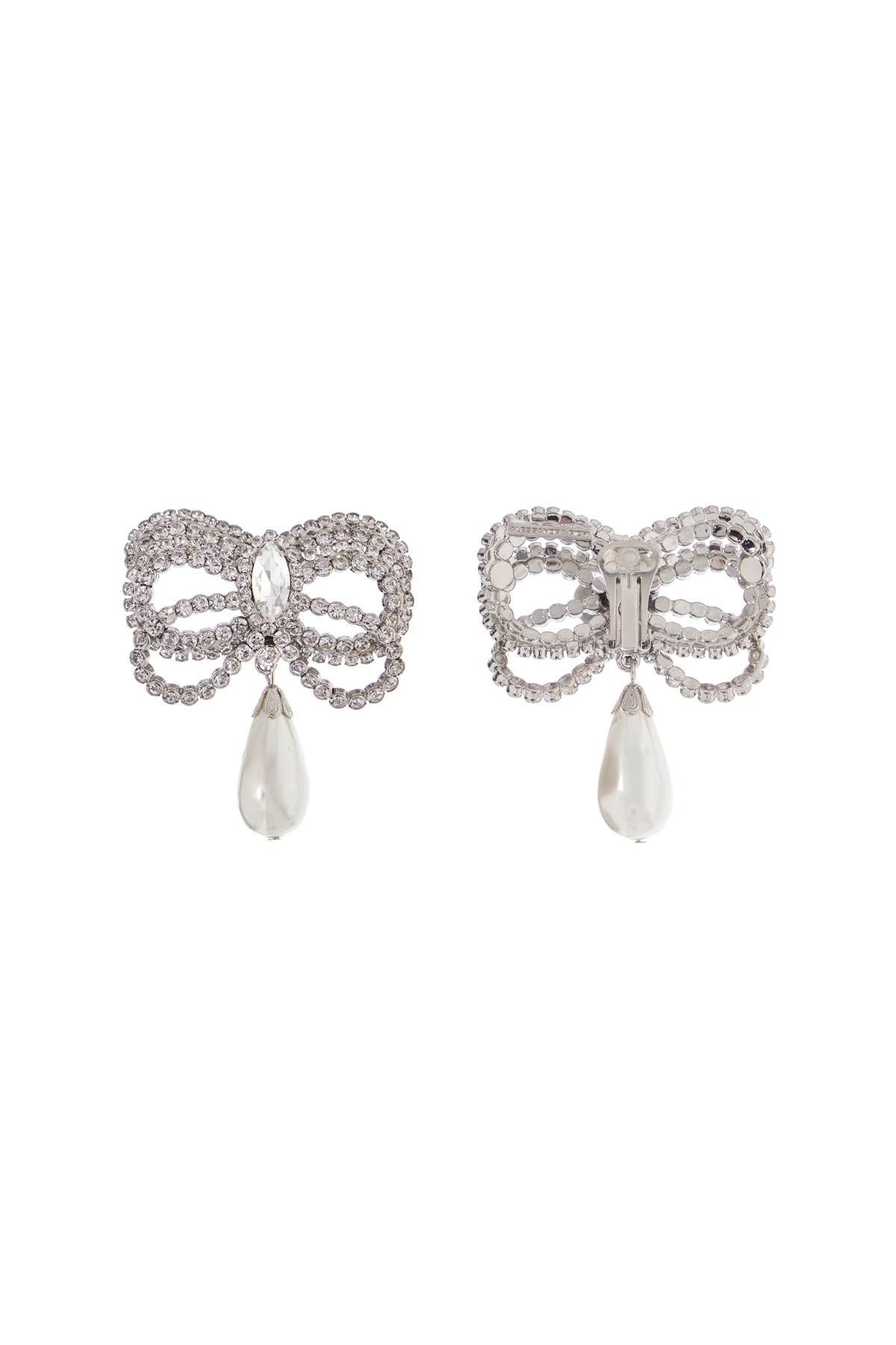 보우 이어링 위드 크리스탈 팬던트 in silverplated brass