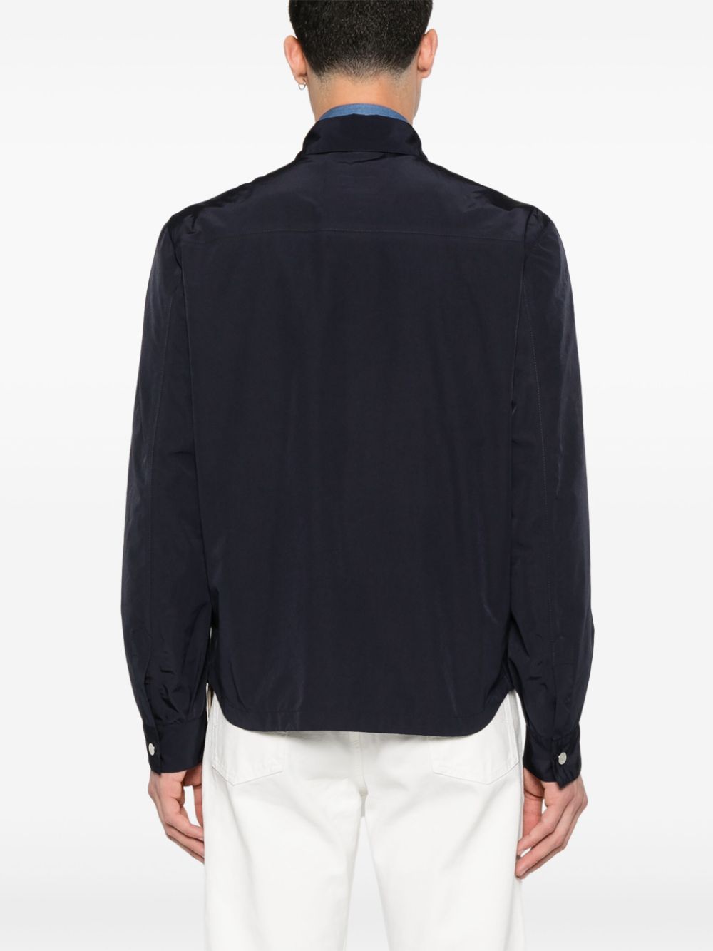 navy blue front press-stud and zip fastening press-stud fastening cuffs two chest flap pockets two side welt pockets