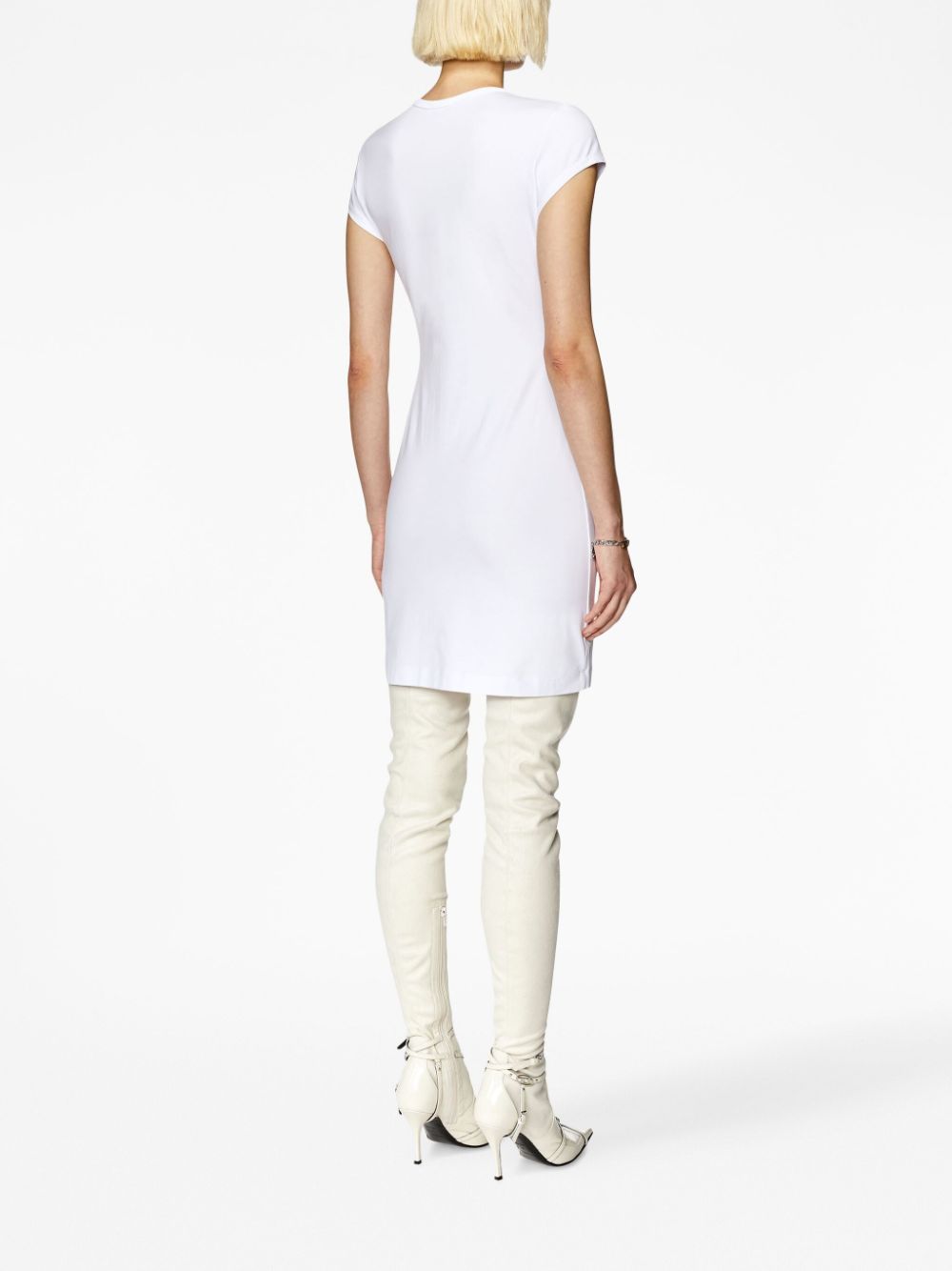 white stretch-cotton jersey knit logo patch to the front crew neck short sleeves thigh-length This item is made from at least 50% organic materials. Learn more about what makes a product Conscious on our Conscious Criteria page