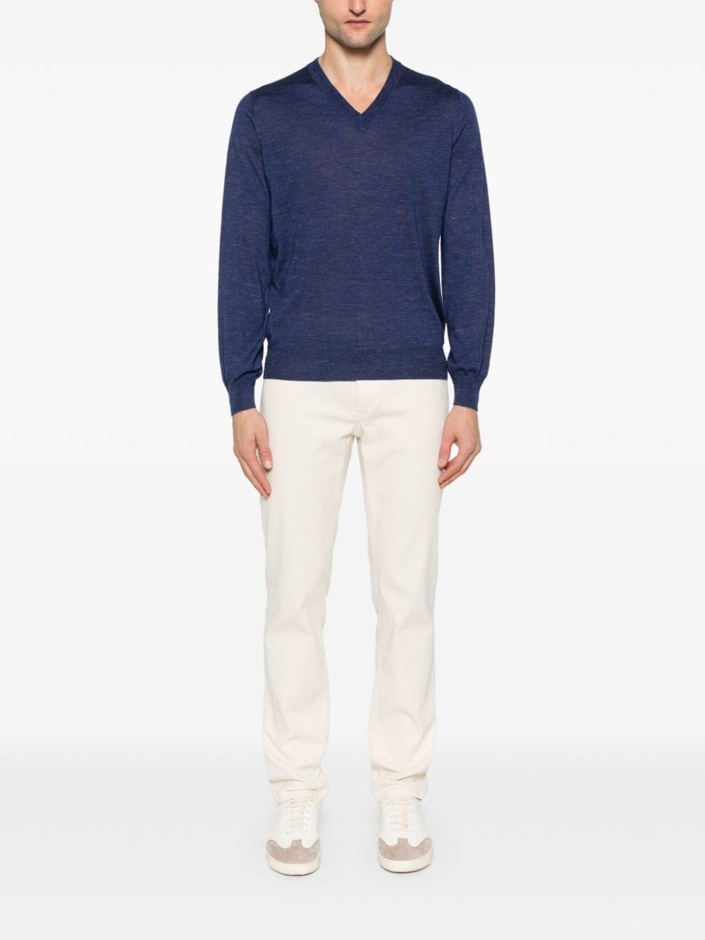 롱 슬리브 브이넥 스웨터