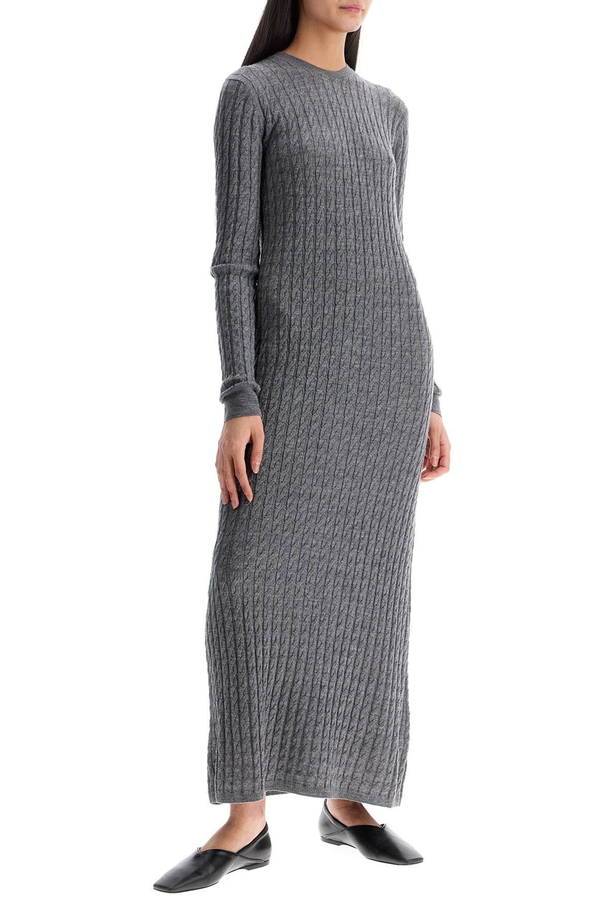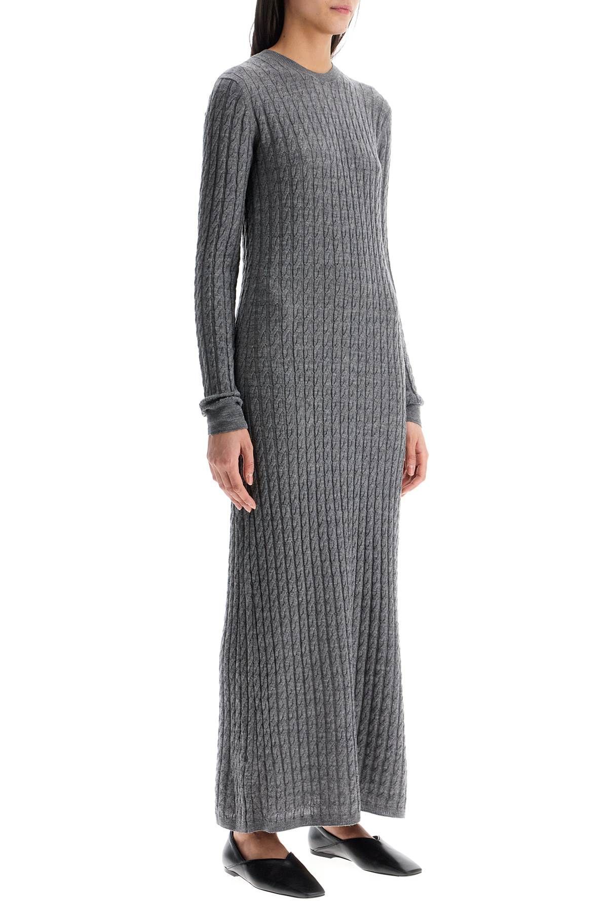 > 롱 드레스 in rws 울 그레이 mélange 위드 케이블 니트 패턴