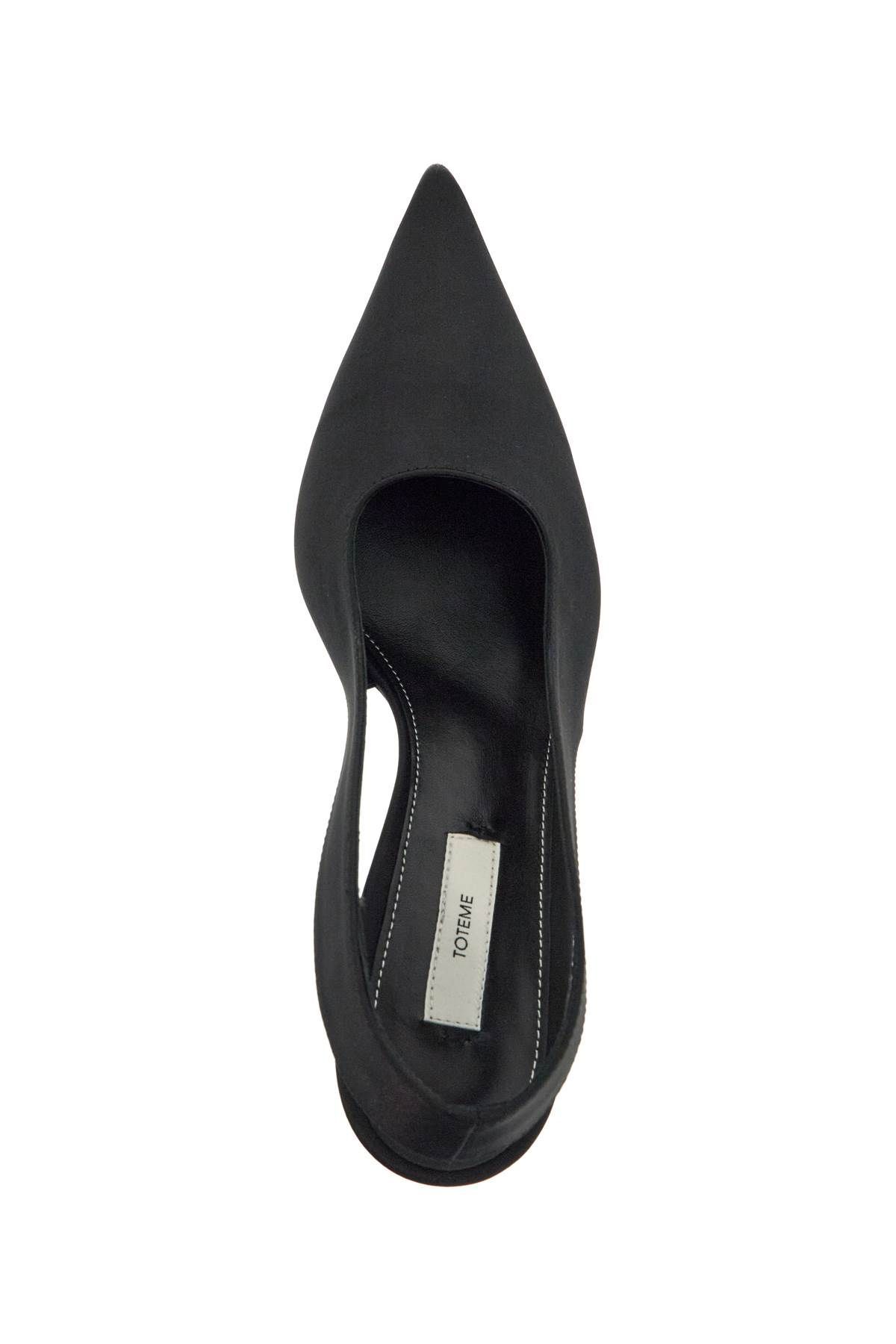 > 블랙 샤틴 슬링백 위드 스텔레토 힐