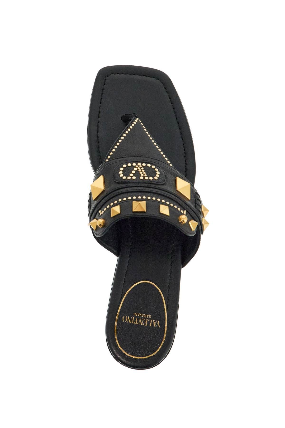 The Valentino Garavani flip-flops in black buffalo leather offer minimalist elegance and comfort