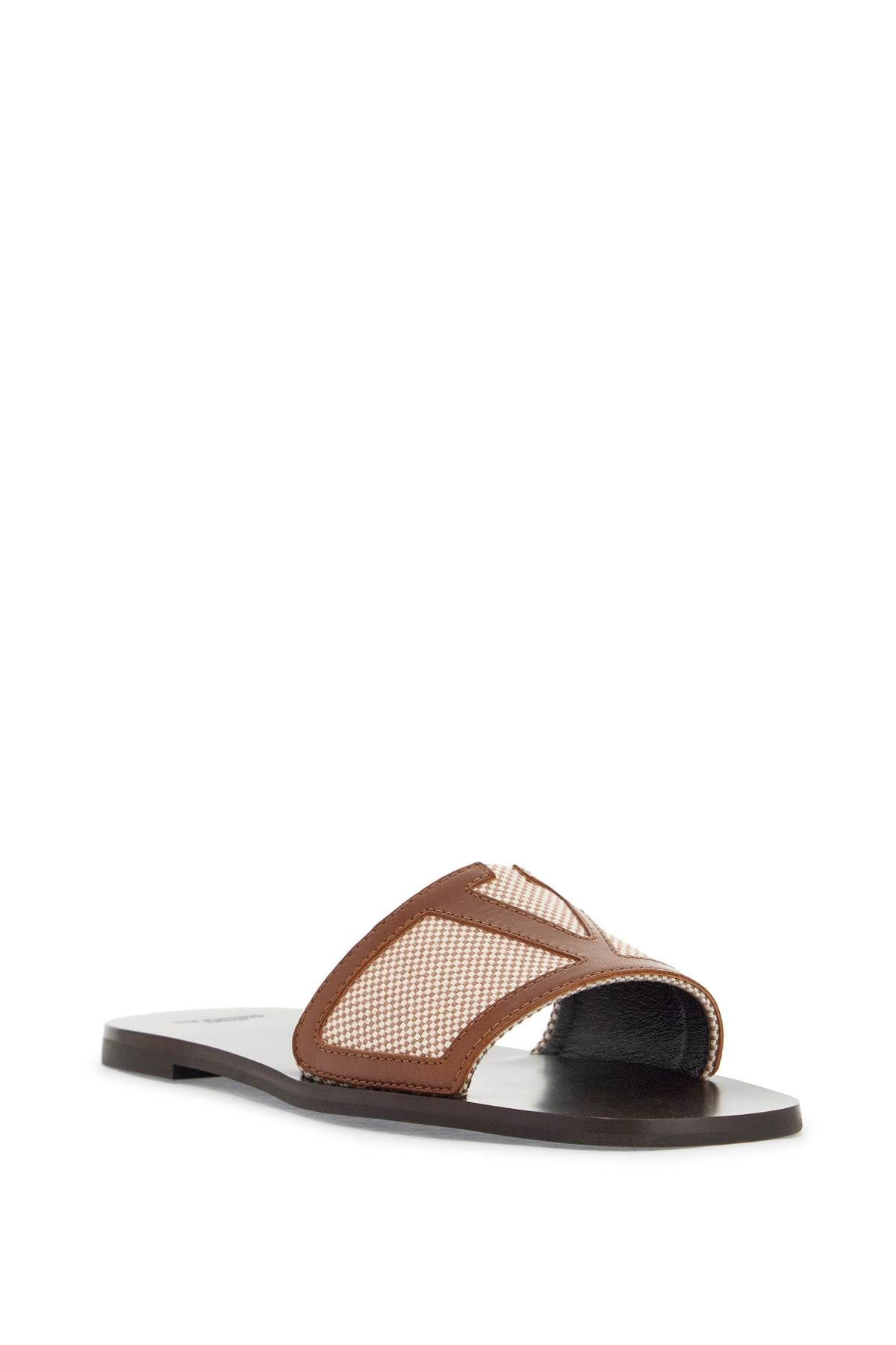 > womens 슬리퍼 in natural 패브릭 and leathertobacco 위드 와이드 체크 패턴 스트랩