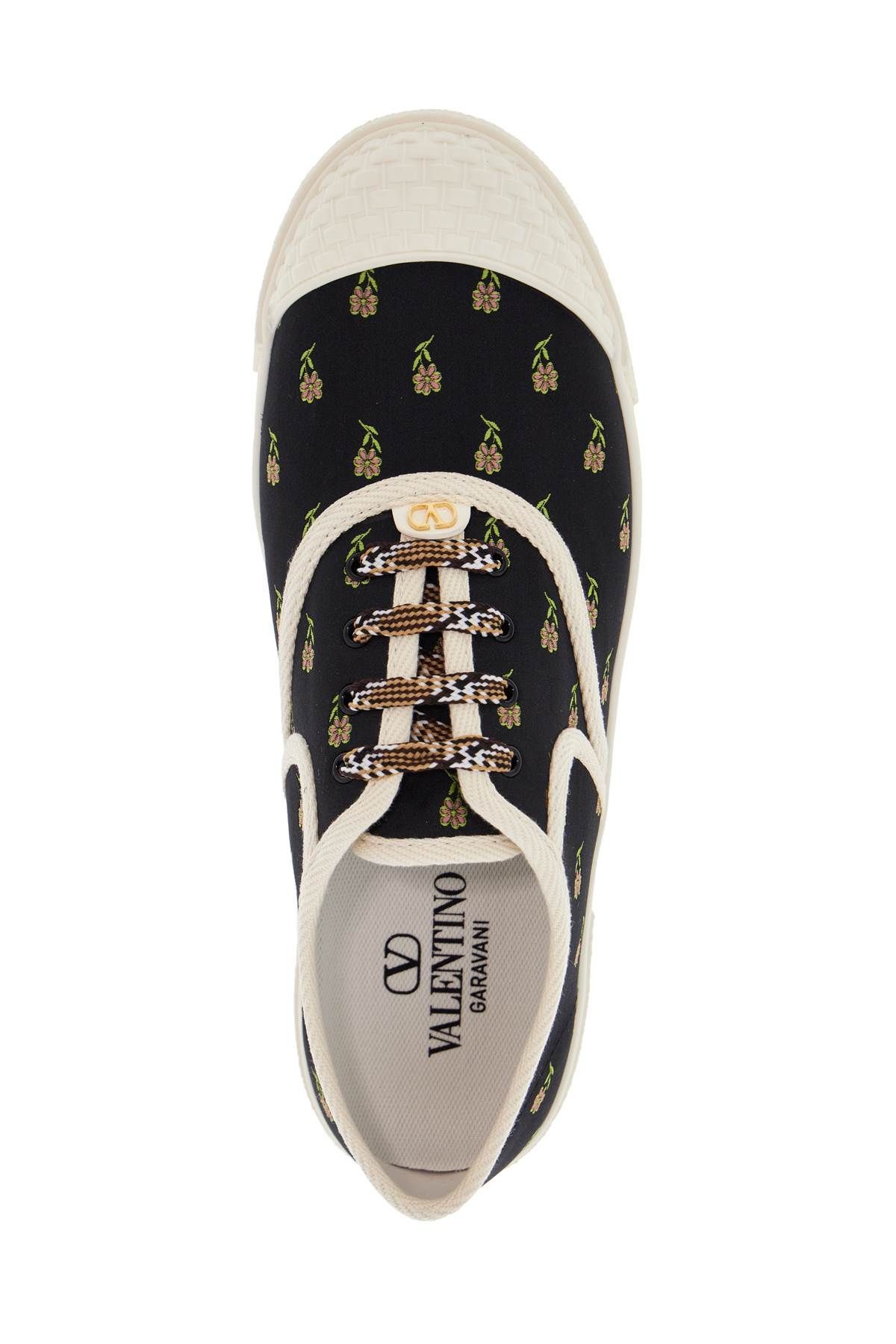 블랙 코튼 스니커즈 위드 플로랄 패턴 and 러버 sole