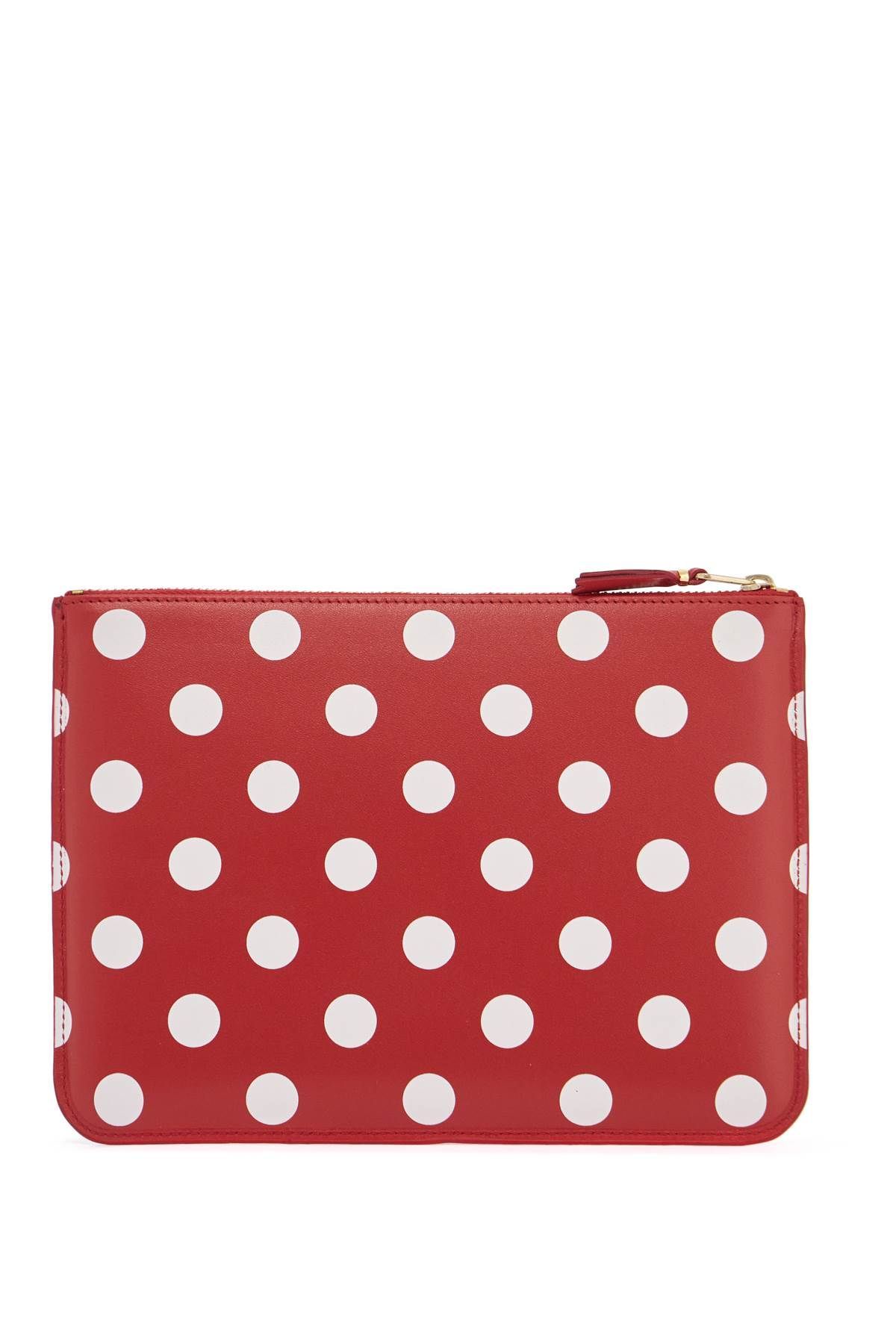 red 폴카 도트 레더 unisex 지갑 위드 zip