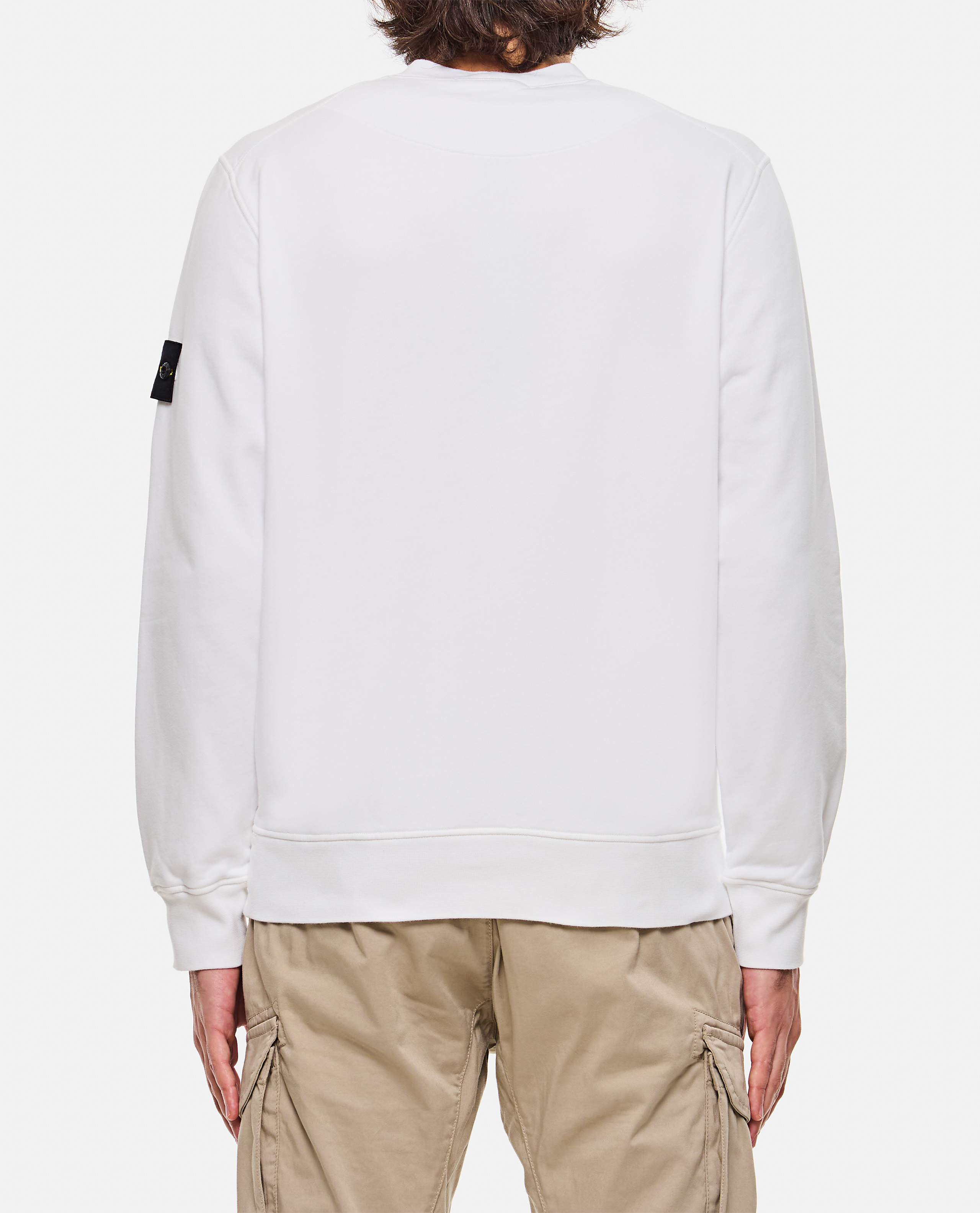 Crewneck sweatshirt in organic cotton fleece with ribbed neckline, overlock seams, and lunette detail under the back neckline. Garment dyed.