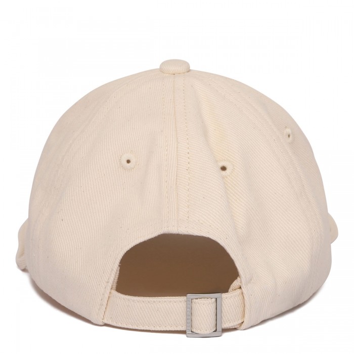 Off-white cotton The Artichaut baseball cap from Jacquemeus featuring weather-resistant treatment, fringed trims, topstitched brim, silver metal logo, back adjustable strap with a metal stopper.